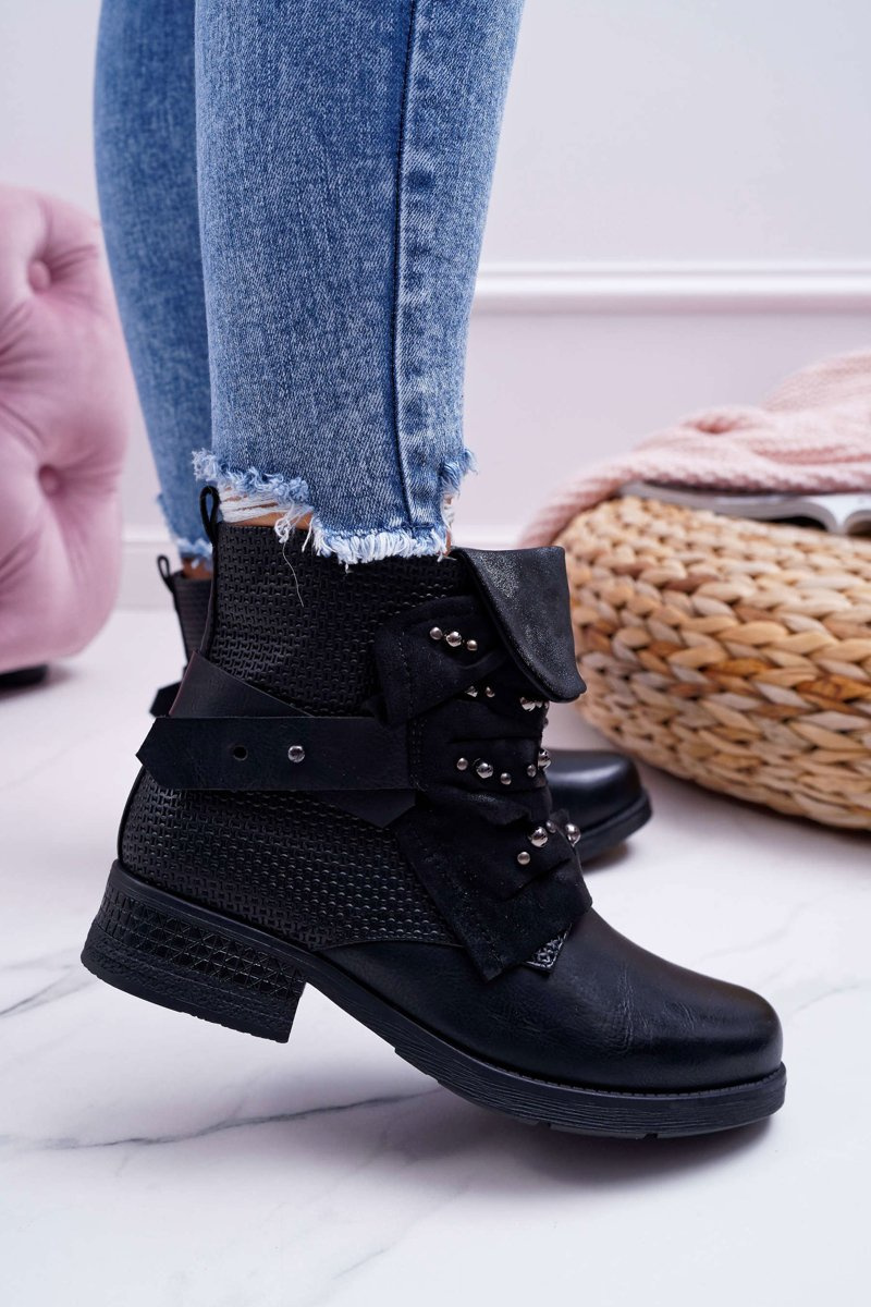 Жіночі чоботи на плоскій підошві Теплі чорні дебра