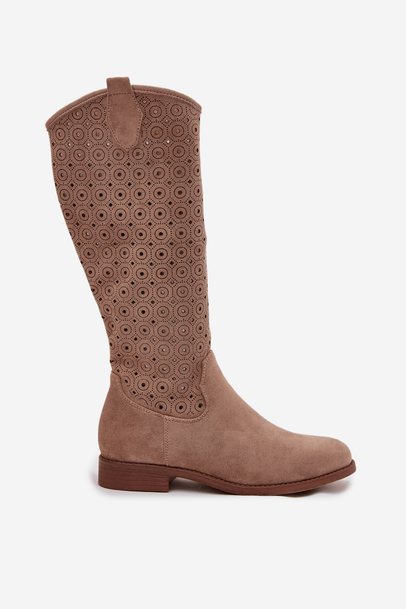 Жіночі чоботи на плоскій підошві з відкритим візерунком S.Барски HY52-531 Бежевий