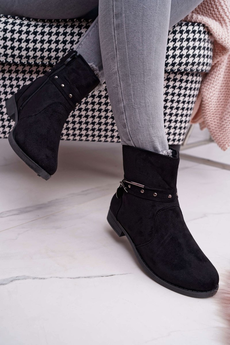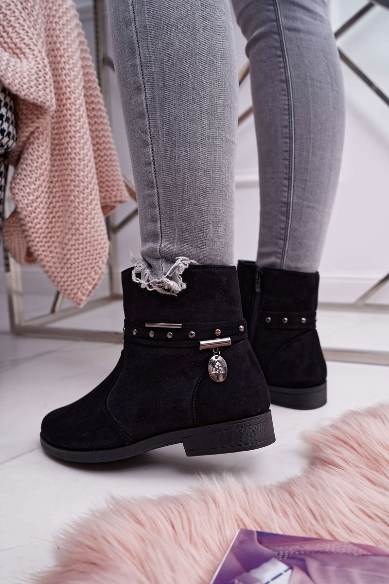 Не знаєте, що вдягнути? Немає нічого простішого! Вибирайте чорні чоботи, які підійдуть буквально до будь-якого стилю. Екологічна замша, з якої вони виготовлені, виглядає красиво, а витончена пряжка навколо щиколотки надає їм сильнішого характеру. Внутрішня частина взуття покрита взуттєвою ковдрою з коротким ворсом, яка забезпечить нам комфорт і тепло навіть у холодні дні. Блискавка збоку полегшить надягання. При виборі розміру вказуйте таблицю розмірів.