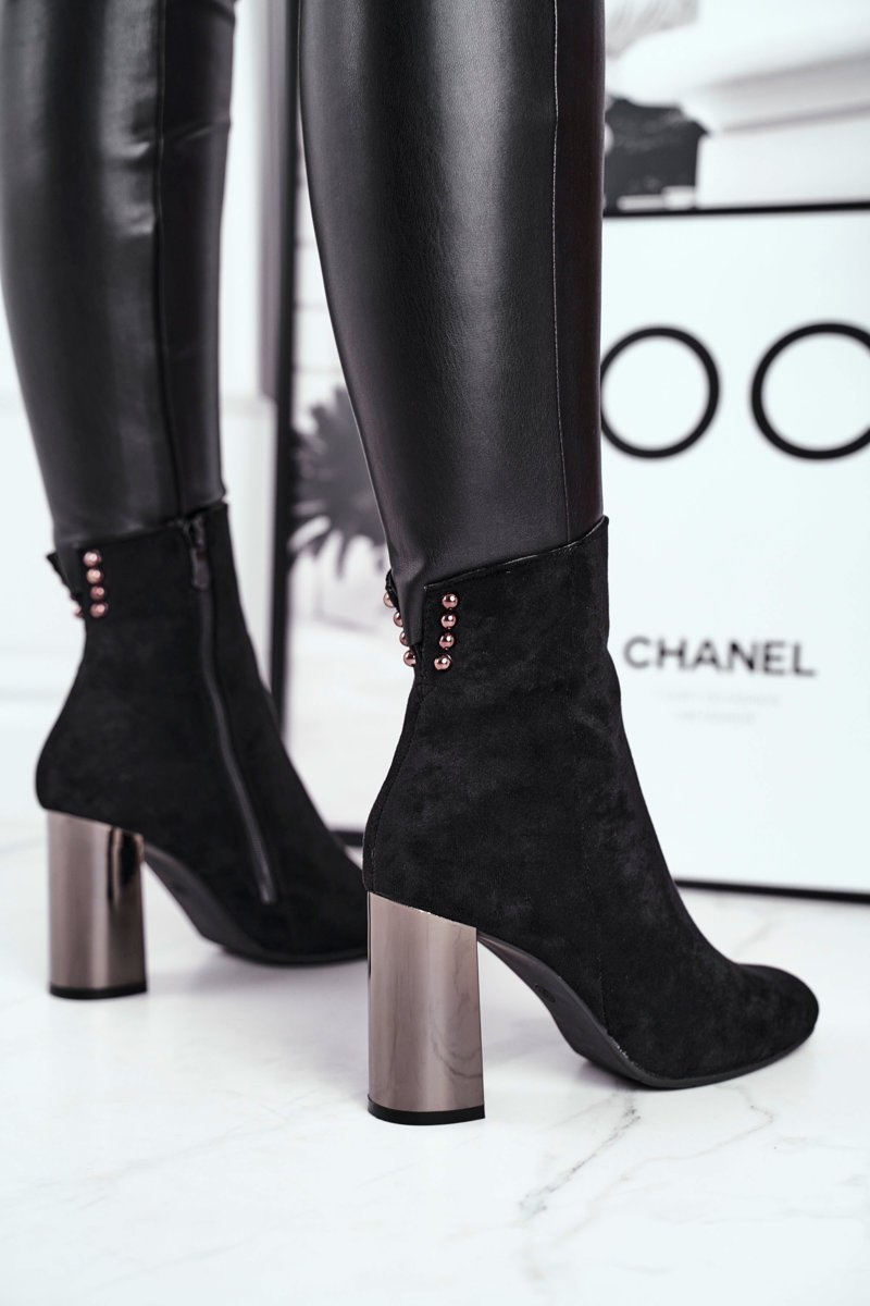 Чорні чоботи з приємної на дотик еко-замші з дзеркальним каблуком - наша новинка. Стійка стійка і отвір на блискавці забезпечать комфорт використання. Шліф у верхній частині регулюється на будь-яку ширину, що робить його відмінним вибором для використання восени або навесні. При виборі розміру скористайтеся таблицею розмірів.