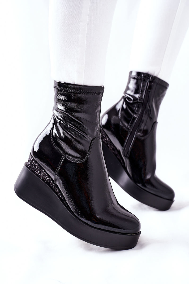 Жіночі чоботи на танкетці лаковані Black Therapie