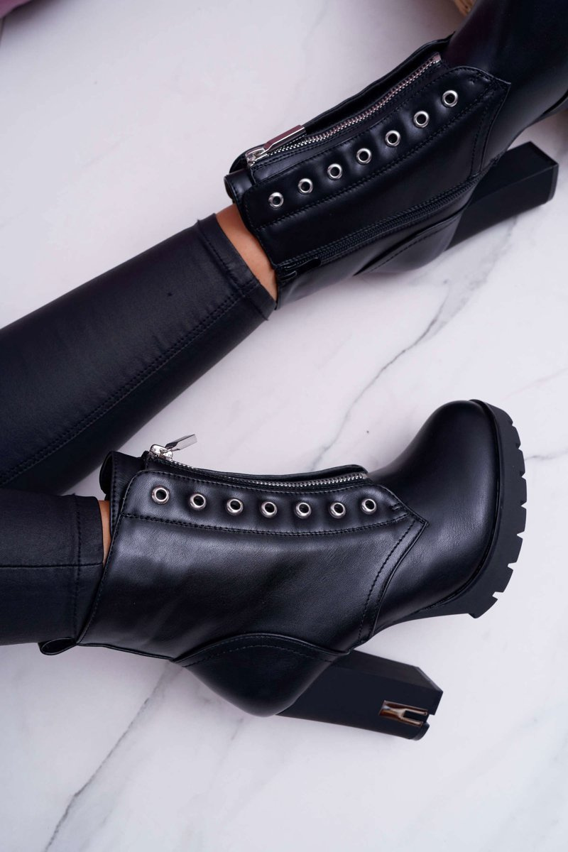 Жіночі чоботи на шпильці, декоративна блискавка, чорні Imagine