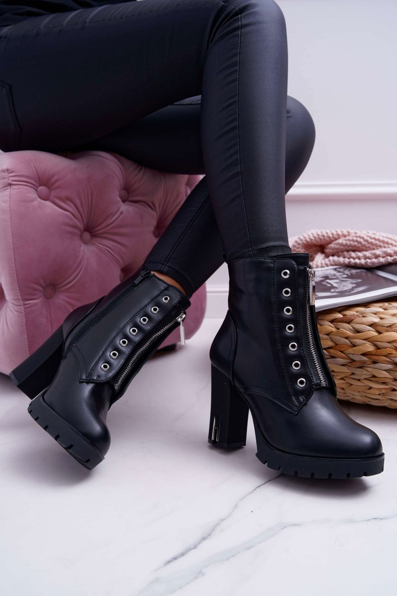Взуття має бути модним і практичним, і саме такими є наші черевики. Ніжна шпилька, яка підніме наш силует і підкреслить фігуру. Внутрішня частина покрита приємною на дотик ковдрою для взуття з коротким ворсом. Верх прикрашений сріблястою блискавкою та отворами для шнурків. Черевики застібаються на додаткову блискавку збоку. Під час вибору розміру запропонуйте таблицю розмірів, яка доступна після наведення вказівника миші або натискання на даний розмір.
