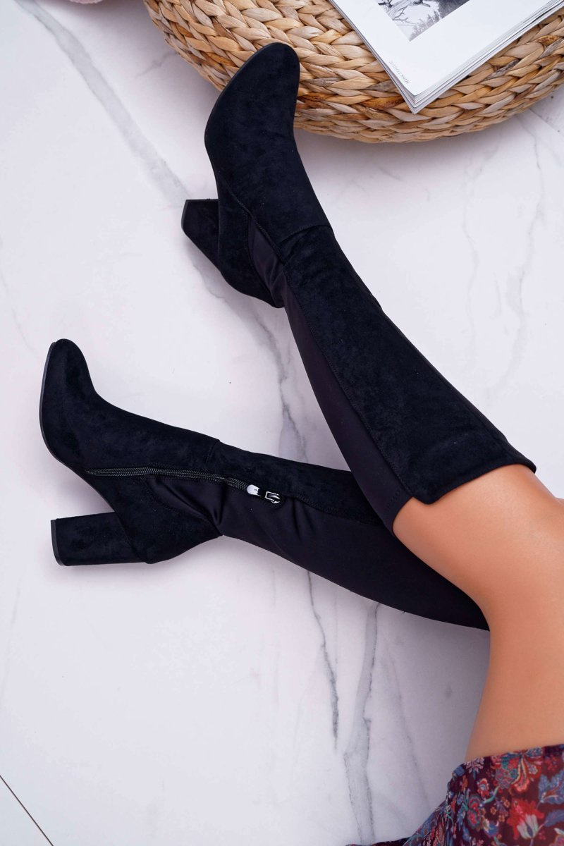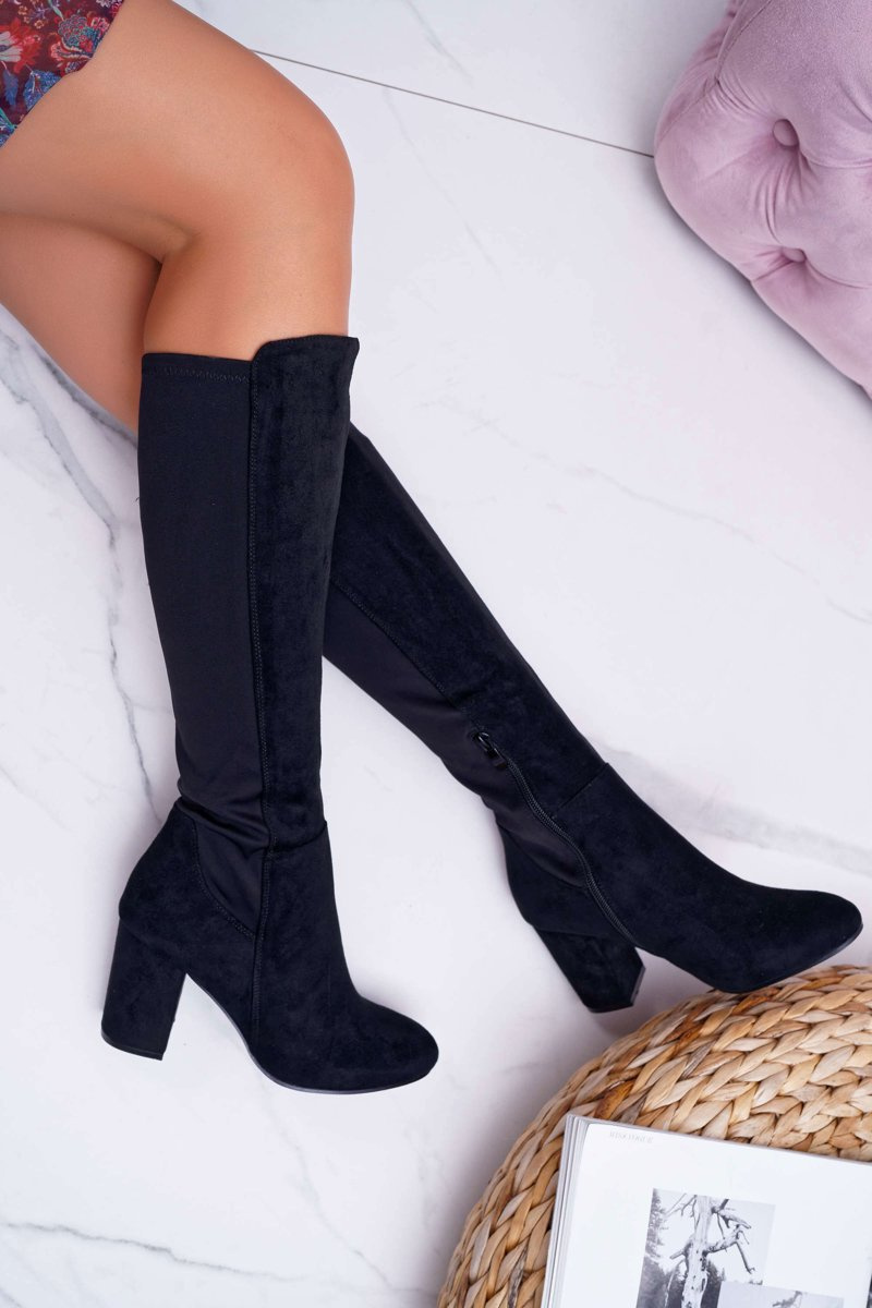 Жіночі чоботи на шпильці замшеві з лайкрою чорні машини