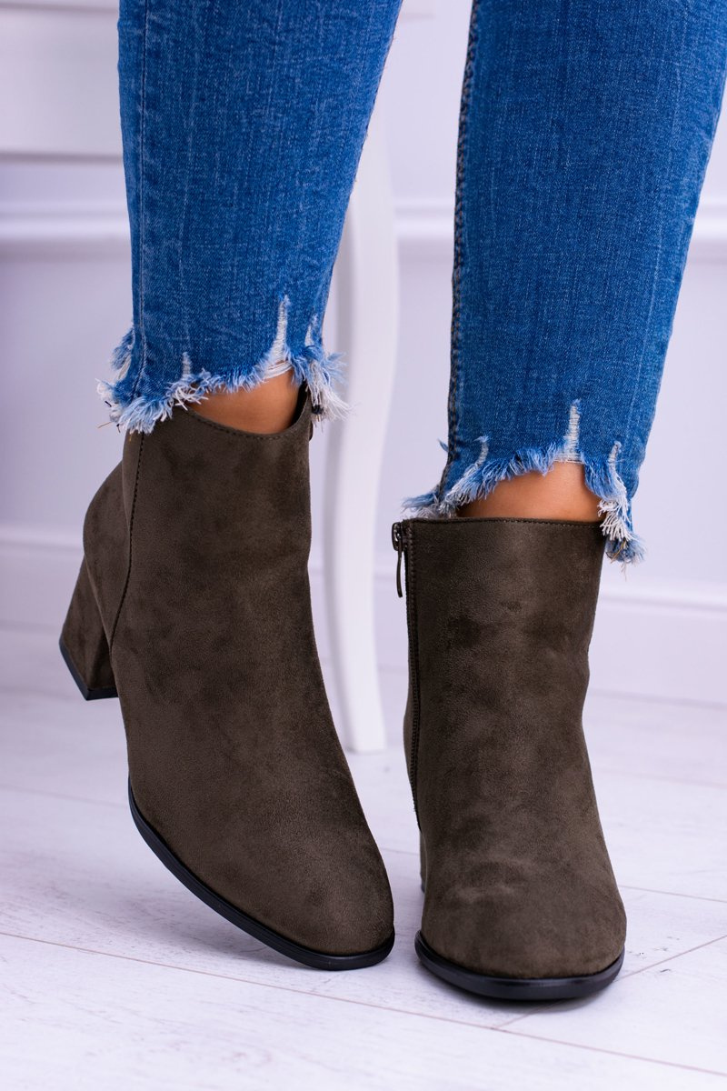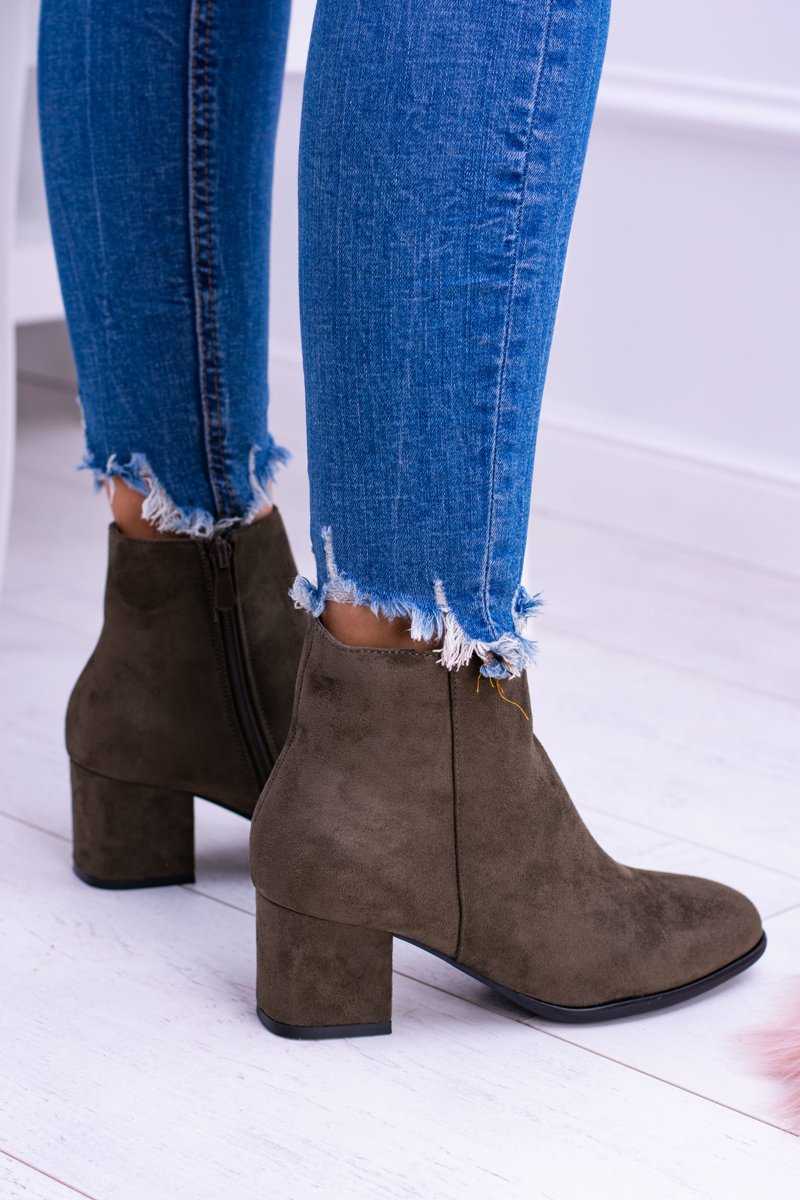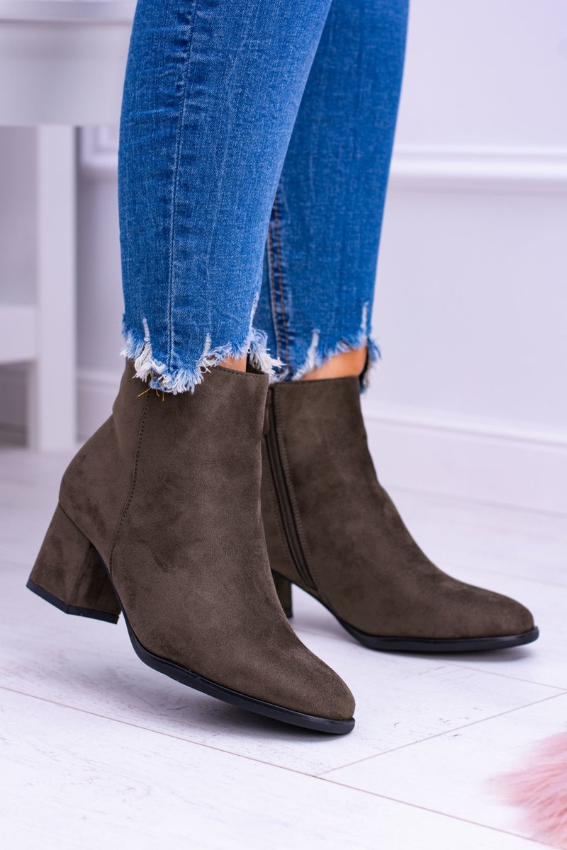 Жіночі чоботи на шпильці замшеві хакі Ferimate