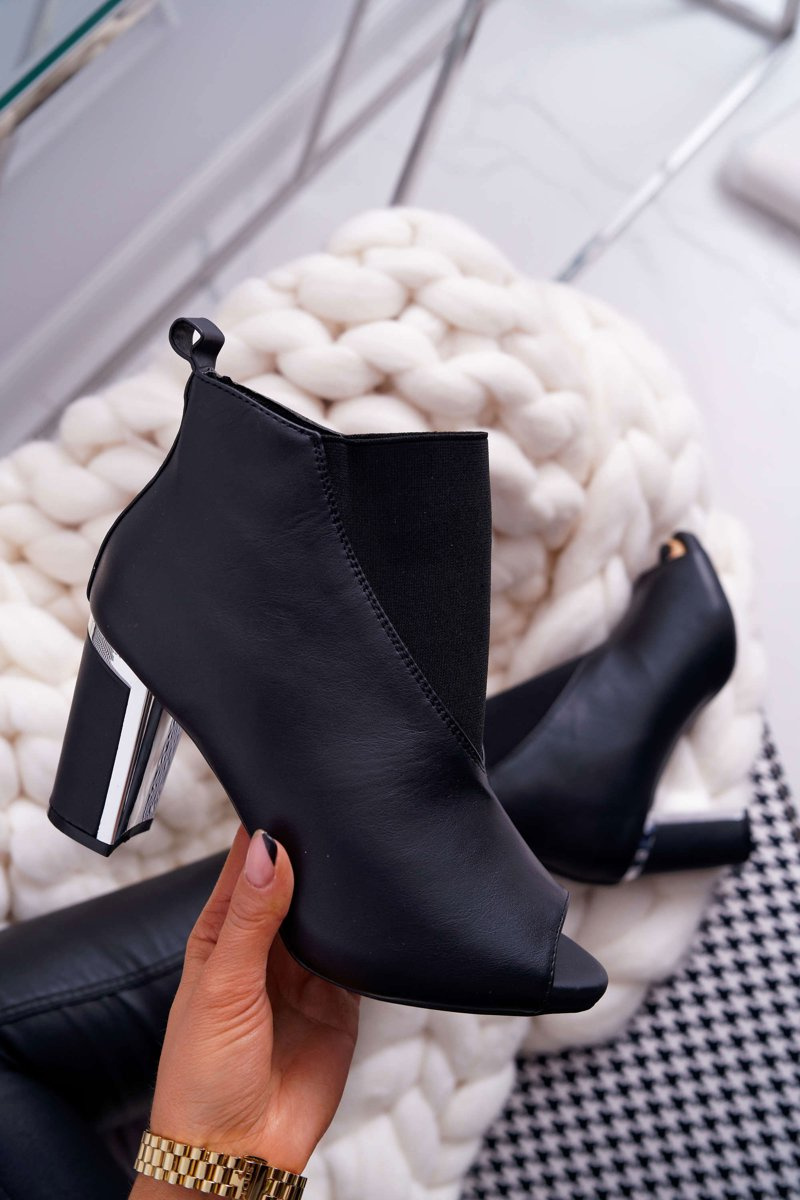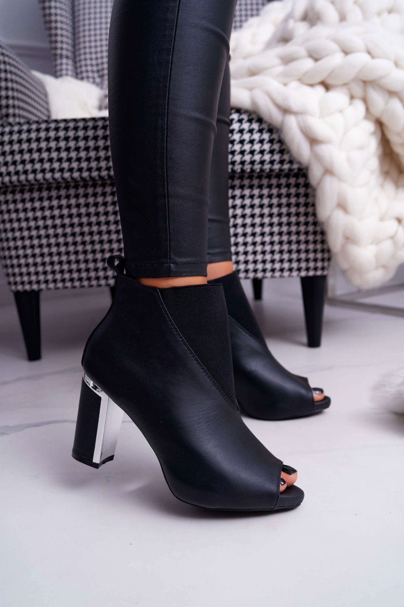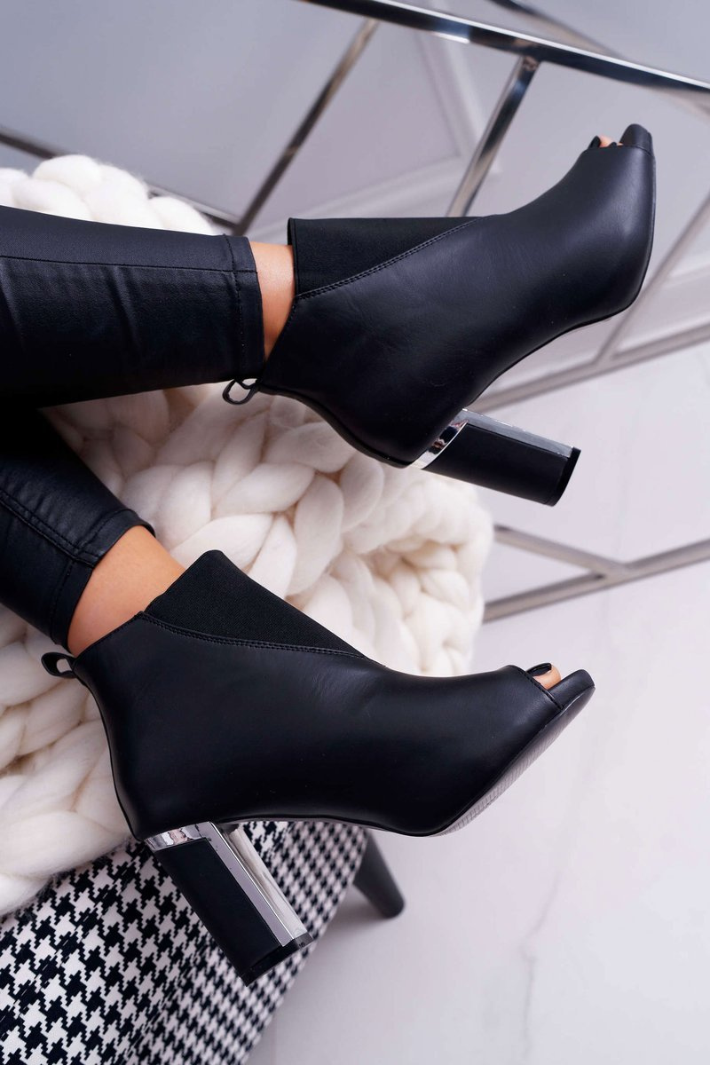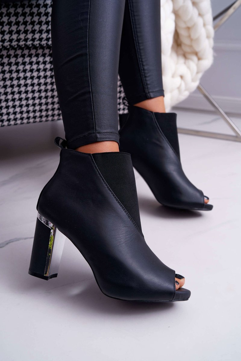 Жіночі чоботи на шпильці з відкритим носком, чорні німецькі