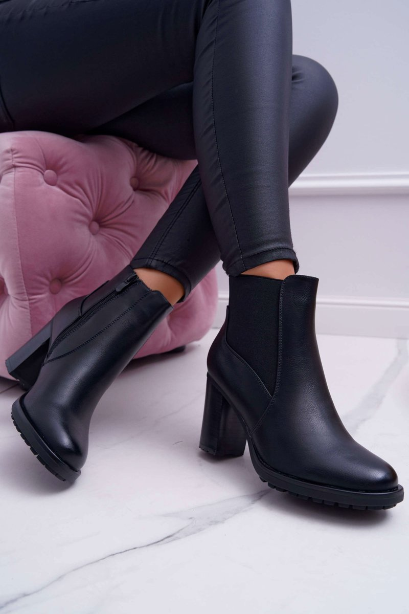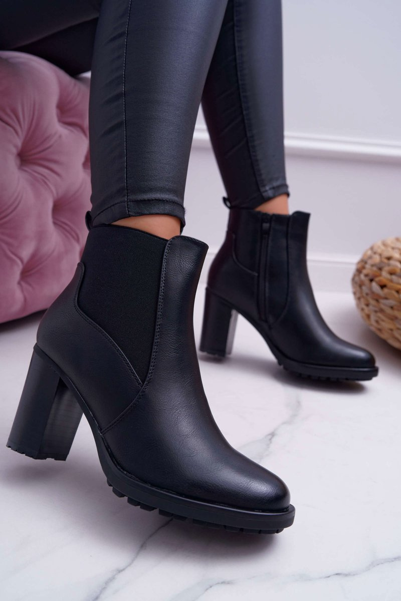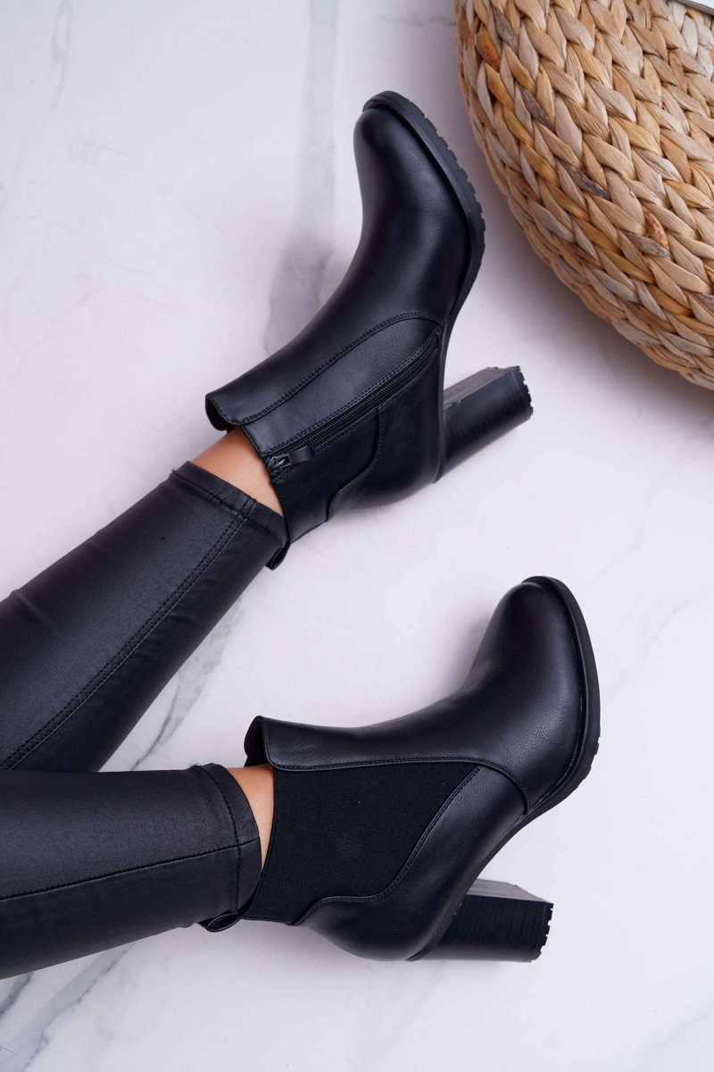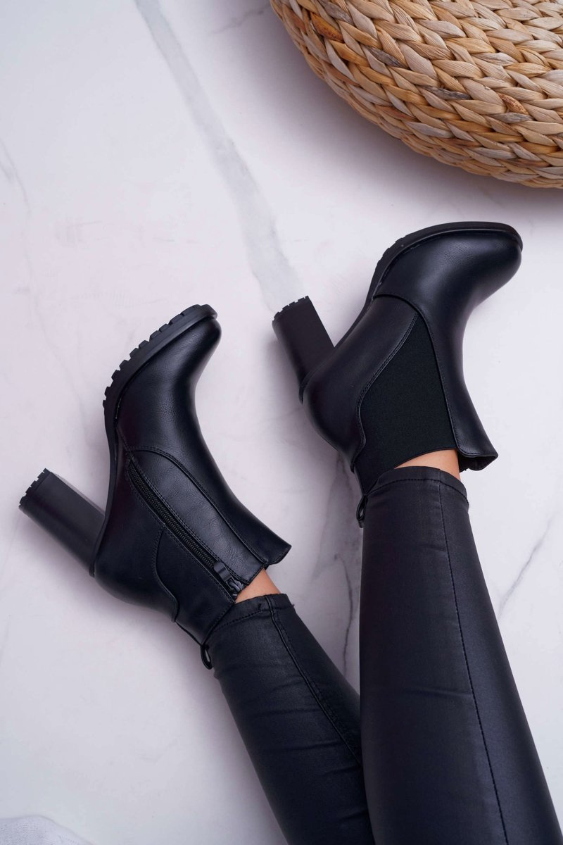 Жіночі чоботи на шпильці на блискавці чорні Beloved