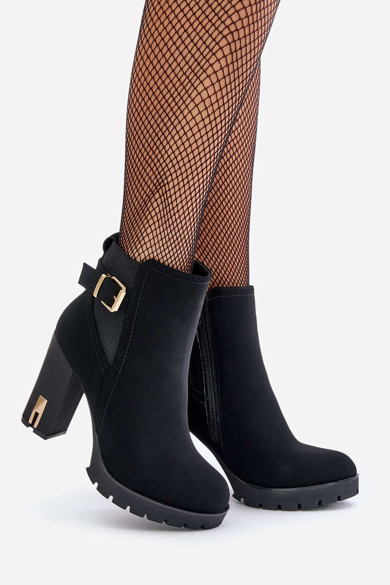 Жіночі чоботи із золотою пряжкою на підборах утеплені чорні Erilanes