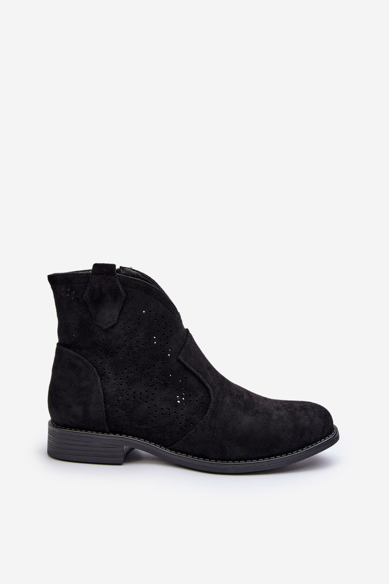 Жіночі ботильйони з еко замші - ідеальний вибір для весняних днів. Перфорований верх надає їм вишуканості. Плоский каблук забезпечує стабільність і комфорт під час використання. Застібаються на блискавку, вони полегшують одягання та знімання чобіт, а закруглені носки додають елегантності. Ці модні черевики стануть відмінним доповненням вашого весняного гардеробу! Ви точно повинні їх мати! Вибираючи розмір, зверніться до таблиці розмірів.
