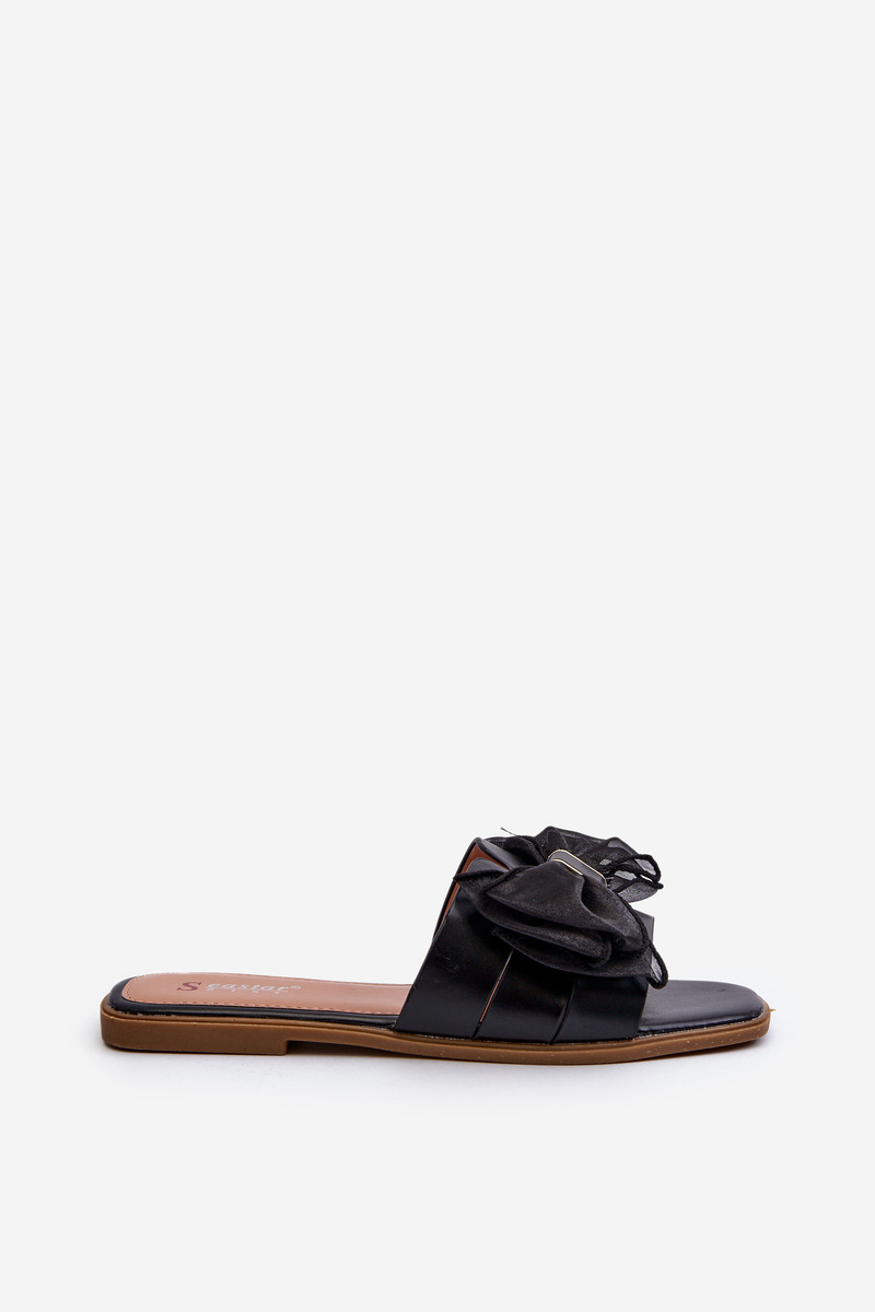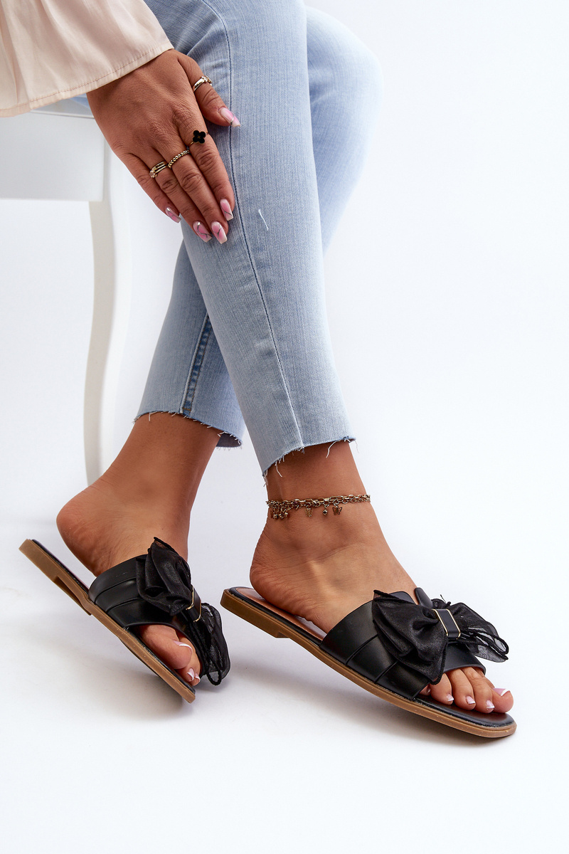 Жіночі чорні сандалі на плоскій підошві з бантом Балінда