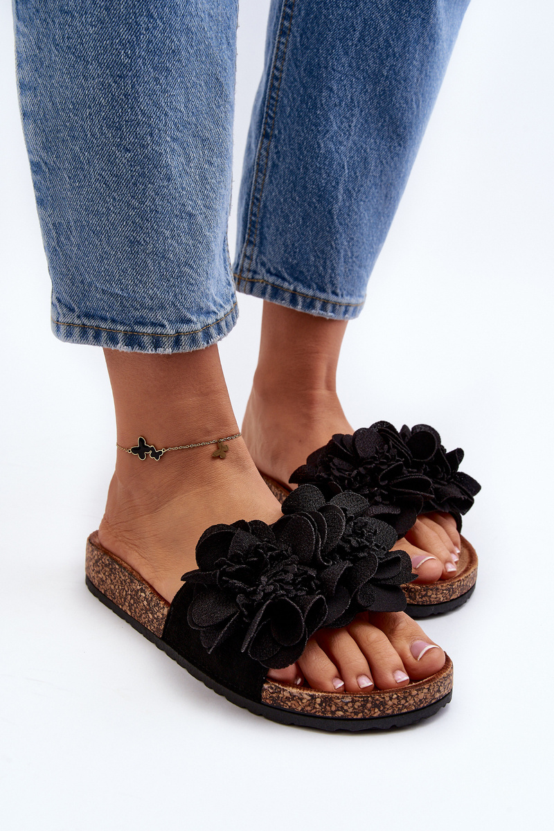 Красиві жіночі босоніжки, прикрашені квітами. Встановити на корковій платформі. Взуття має злегка профільовану устілку, що забезпечить комфорт під час використання. Такий стиль ідеально підходить для повсякденного носіння, роботи або шопінгу. Вони обов'язково повинні бути у вашому літньому гардеробі! Обираючи розмір, орієнтуйтеся на таблицю розмірів.