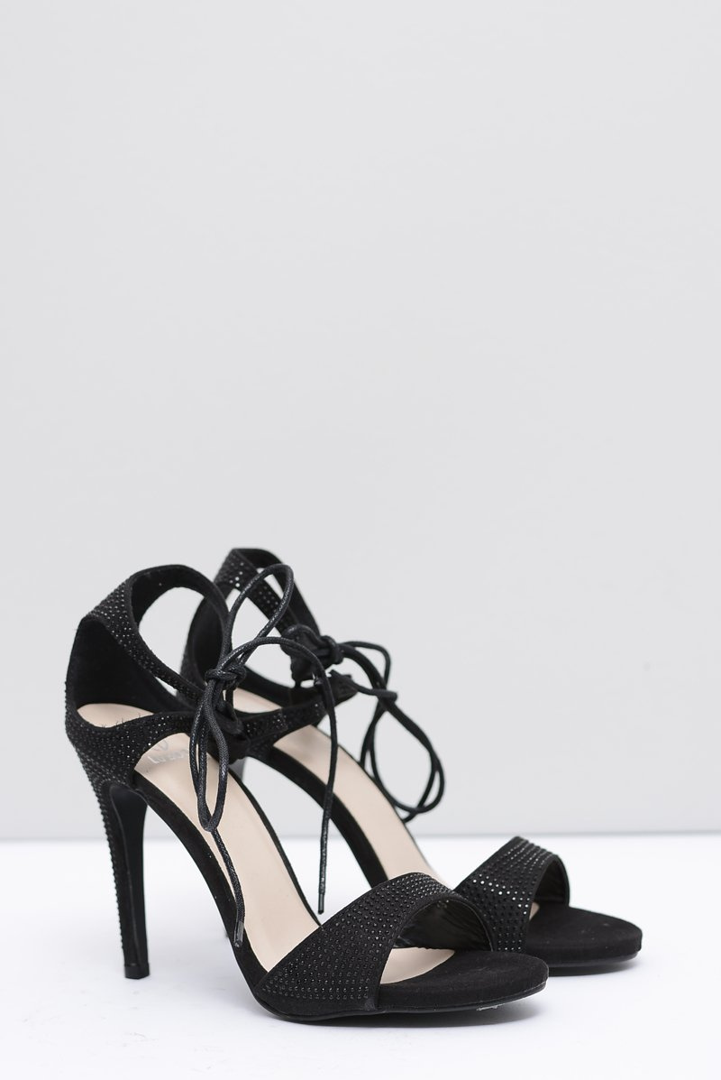 Жіночі чорні туфлі на шпильці з цирконами Belon