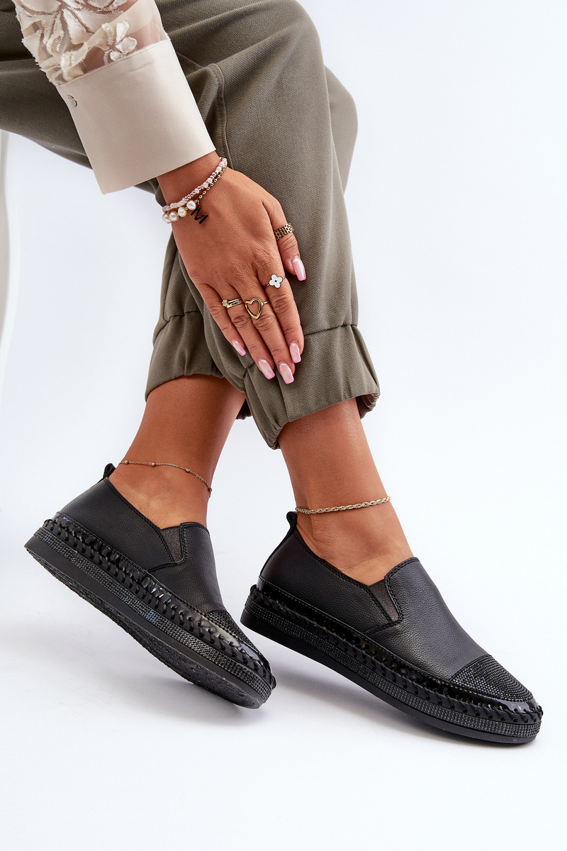 Жіночі чорні шкіряні туфлі на платформі D&A LR370