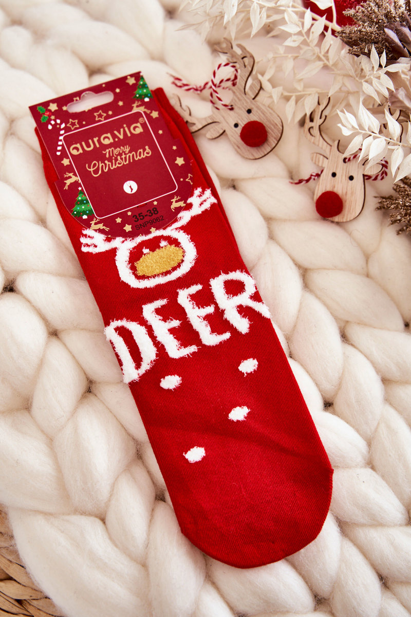 Жіночі шкарпетки з різдвяним малюнком оленячого червоного кольору