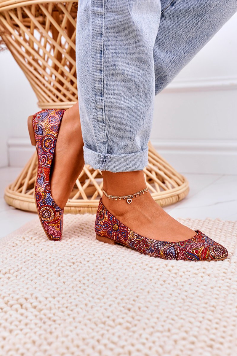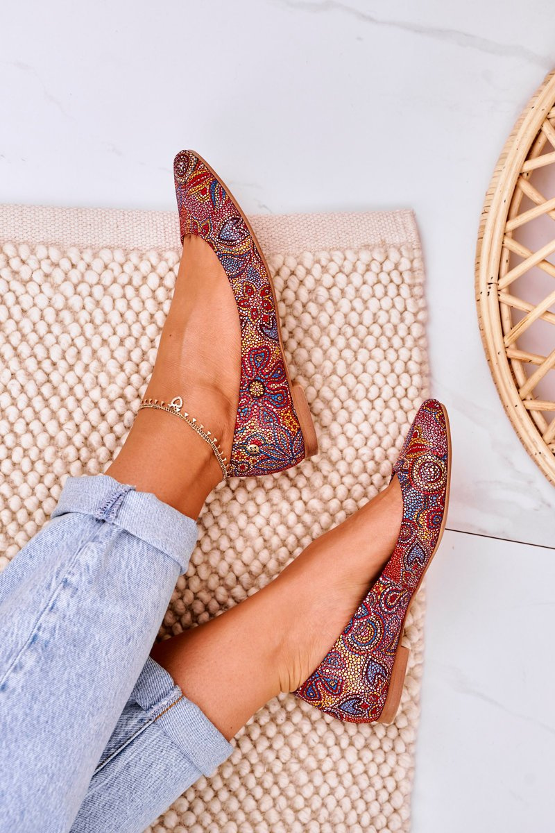 Жіночі шкіряні балетки червоні з квітами 04100-38
