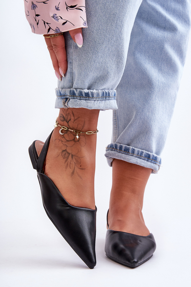 Ці красиві жіночі балерини з еко шкіри мають відкриту п'яту і гострий носок. Ця модель сліпони. Устілка з екошкіри забезпечує комфорт під час носіння. Балеринки мають плоску п'яту та антиковзку підошву. Ви точно можете використовувати їх у багатьох випадках! Вибираючи розмір, зверніться до таблиці розмірів.