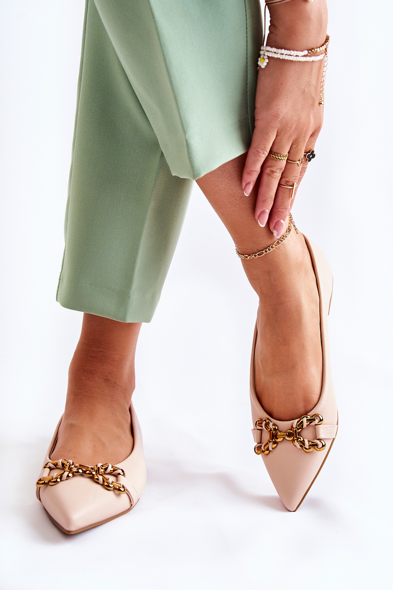 Жіночі шкіряні балетки шпиці з декором Бежеві Carlos