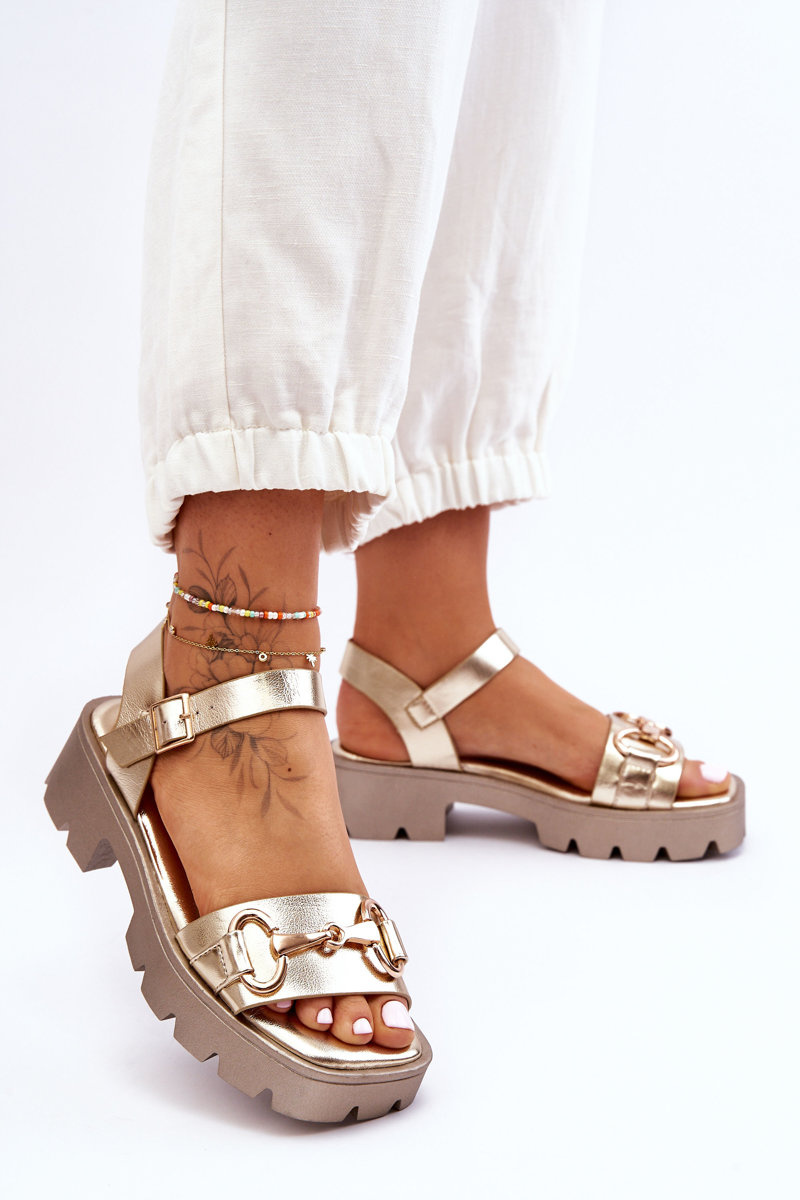 Жіночі шкіряні босоніжки з прикрасами золото Emori