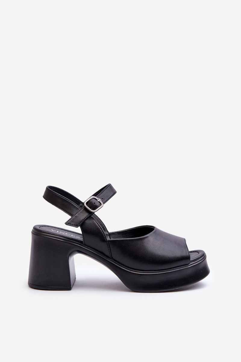 Жіночі шкіряні босоніжки на високих підборах Vinceza 66627 Чорні
