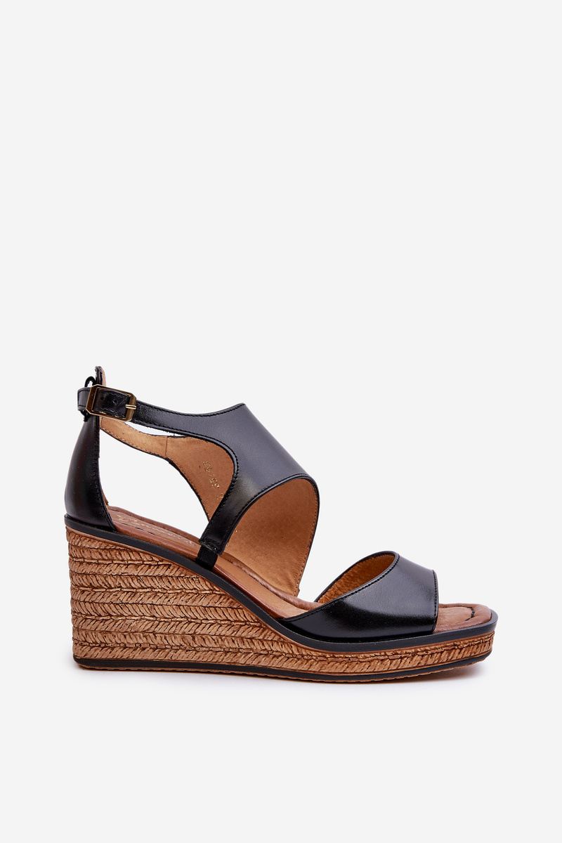 Жіночі шкіряні босоніжки на танкетці Maciejka 06657-01 Чорні
