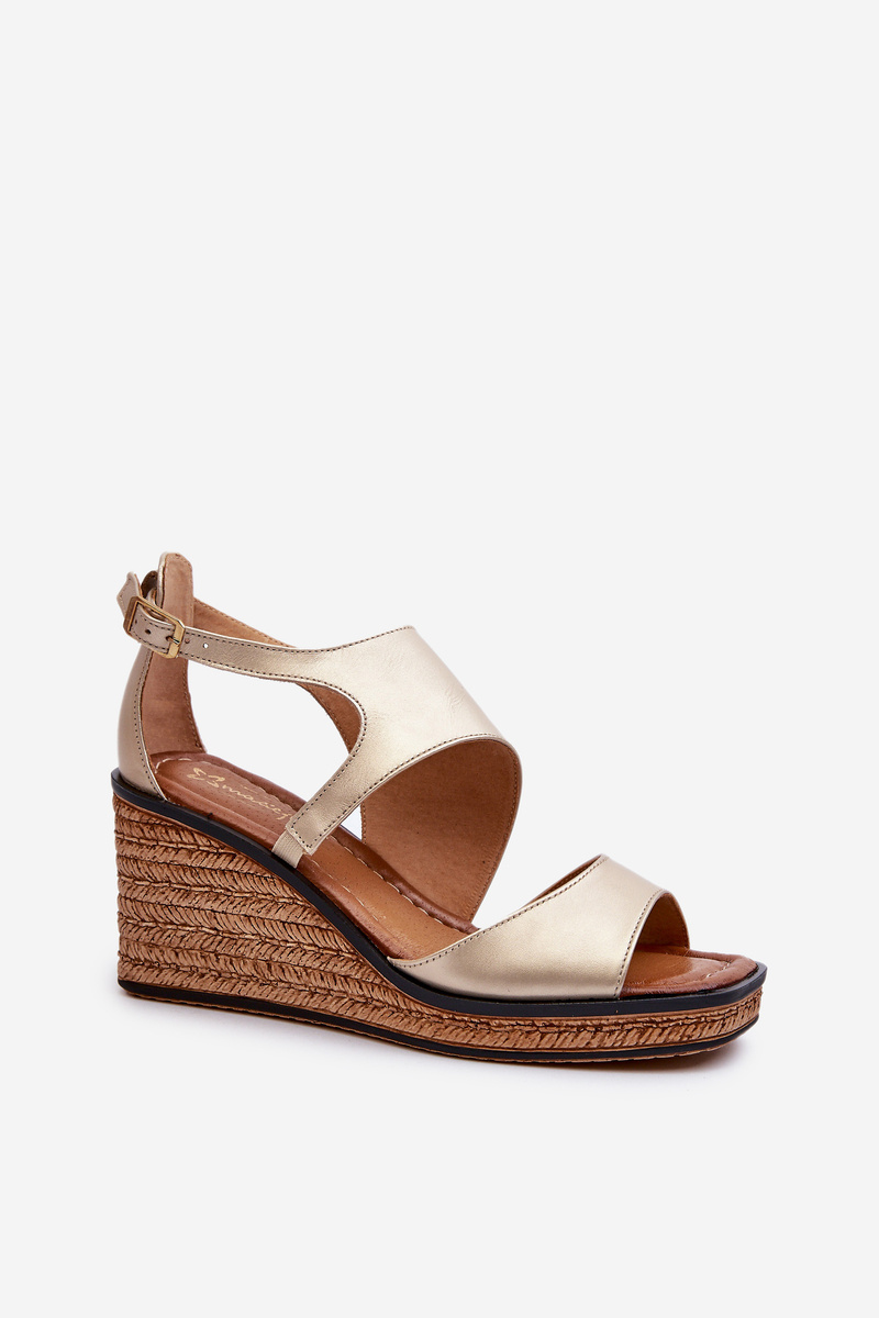 Жіночі шкіряні босоніжки на танкетці Maciejka 06657-25 золото