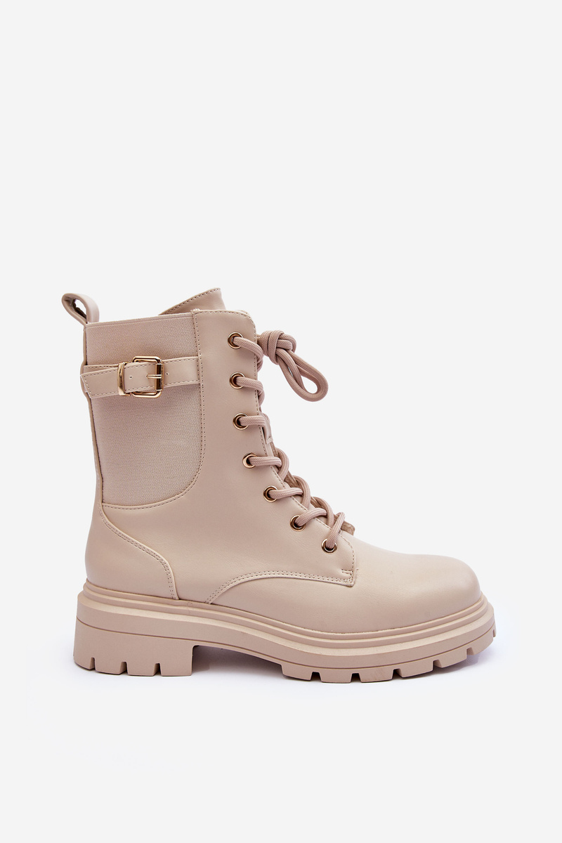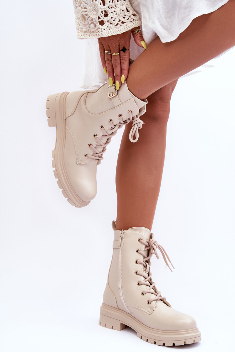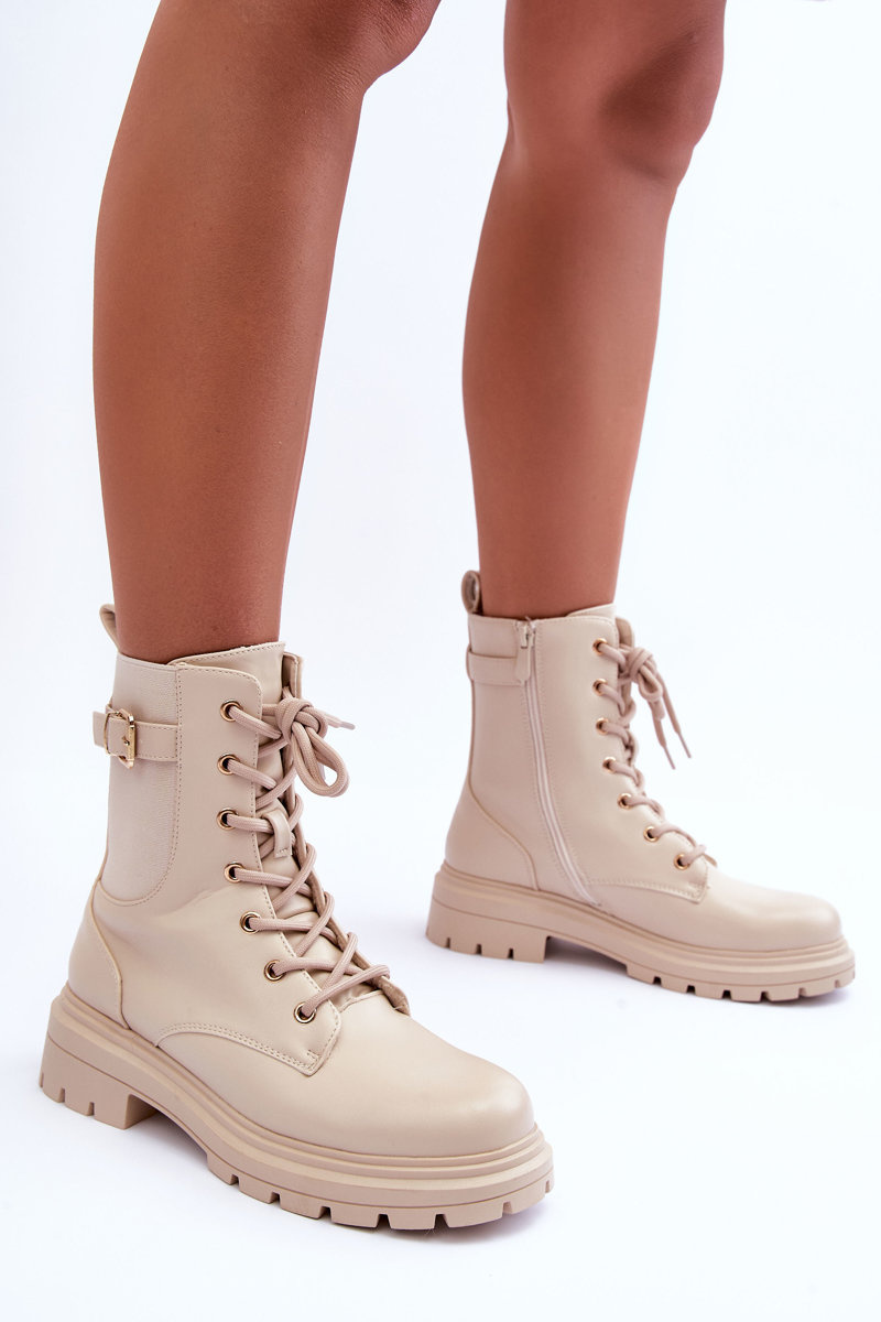 Трендові ботильйони з еко шкіри. Комплект на плоскій каблуці і платформі. Збоку верх застібається на блискавку і додатково шнурується. Дана модель має прикрасу у вигляді пояса з пряжкою. Носок цього взуття посилений. Чудова модель для осінньо-зимових стилізацій! При виборі розміру орієнтуйтеся на таблицю розмірів.