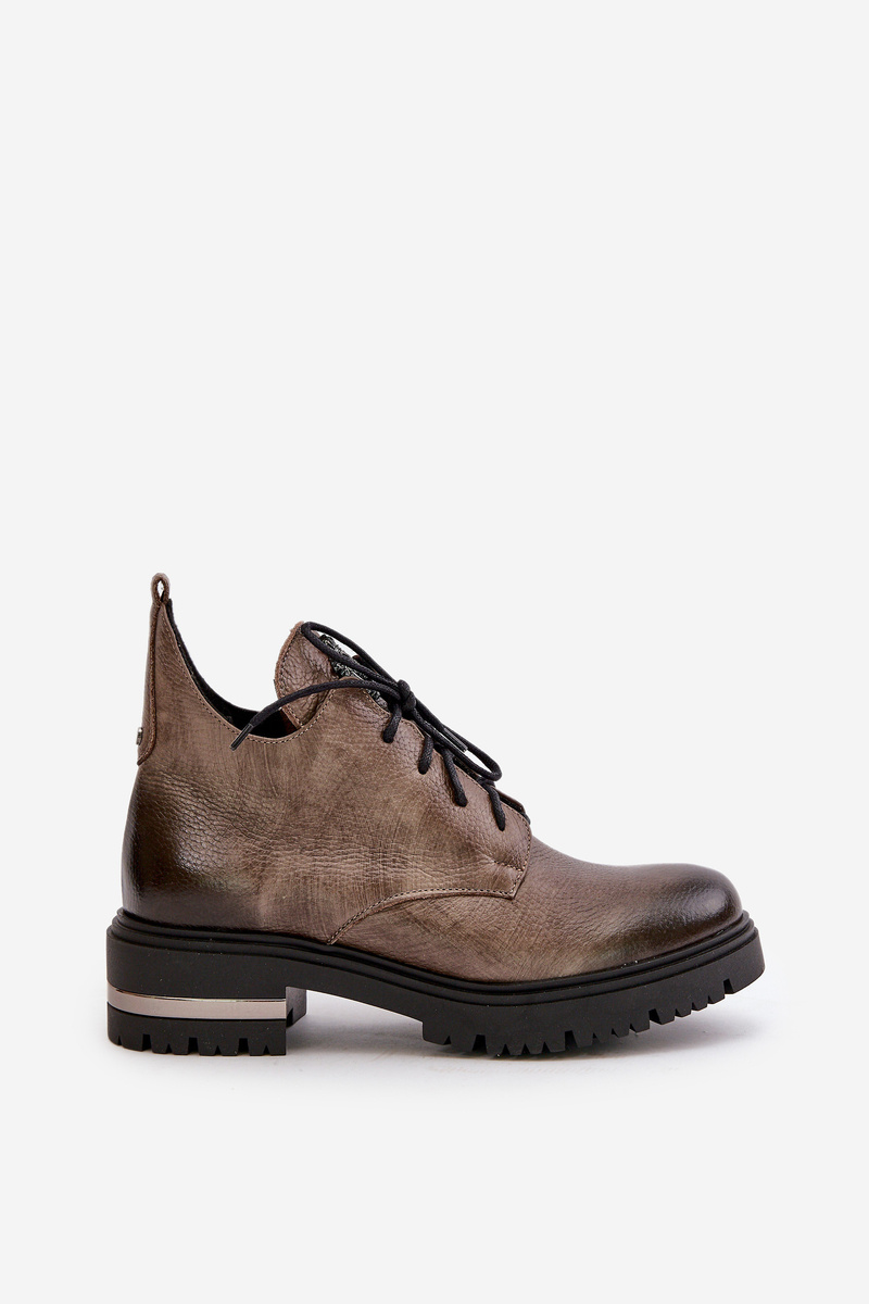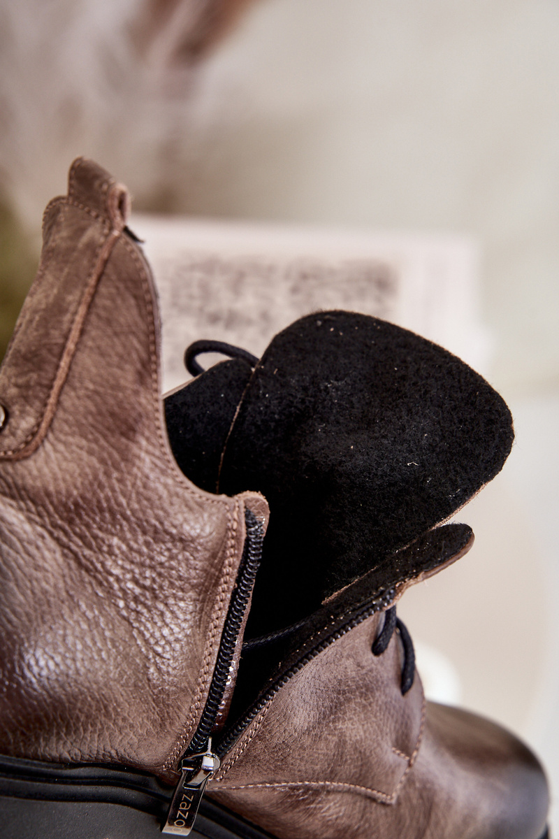 Модні ботильйони з декором на язичку. Вони виготовлені з високоякісної натуральної шкіри. Черевики застібаються на блискавку і шнуруються. Верх неправильної форми ідеально підкреслює багато стилів! Чоботи на плоскій каблуці і платформі. Утеплений взуттєвим флісом. М'яка устілка забезпечує комфорт під час носіння. Обираючи розмір, орієнтуйтеся на таблицю розмірів.