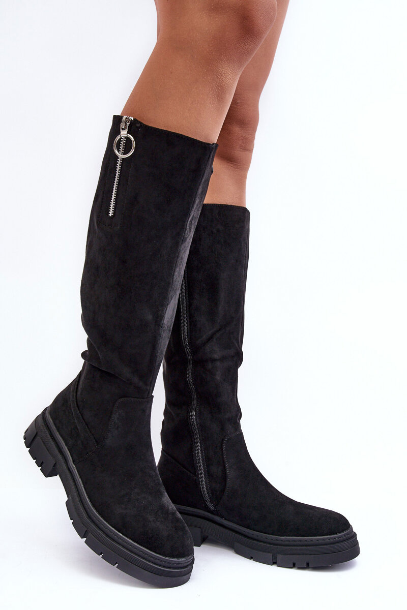 Черевики жіночі з еко замші. Комплект на плоскій каблуці і платформі. Пальці ніг округлі. Збоку застібається на блискавку. По верху є строчки і коротка блискавка зверху. Салон утеплений підкладкою. При виборі розміру орієнтуйтеся на таблицю розмірів.