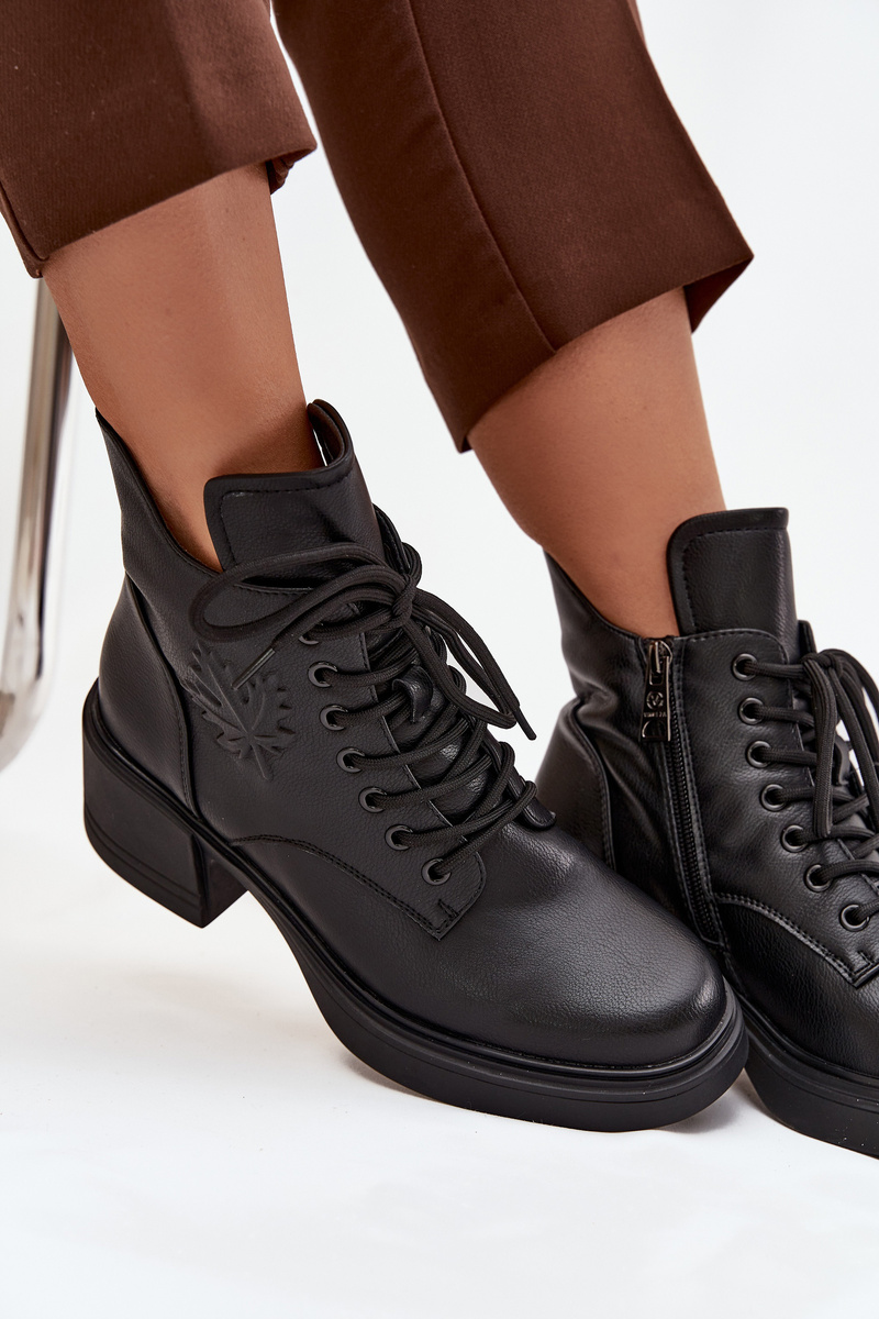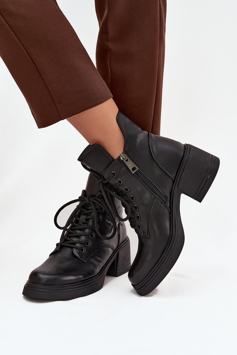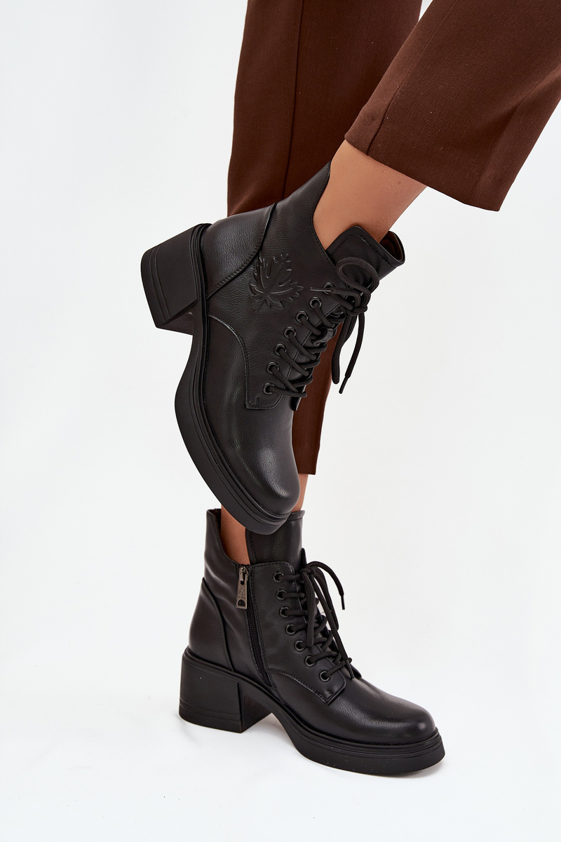 Жіночі шкіряні ботінки на платформі з підкладкою Vinceza 39950 Чорні