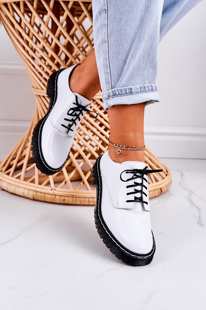 Жіночі шкіряні броги Оксфорди Maciejka 04087-11 лакований білий