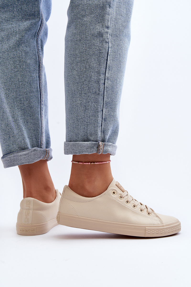Жіночі шкіряні класичні кросівки на шнурівці бежевого кольору Misima