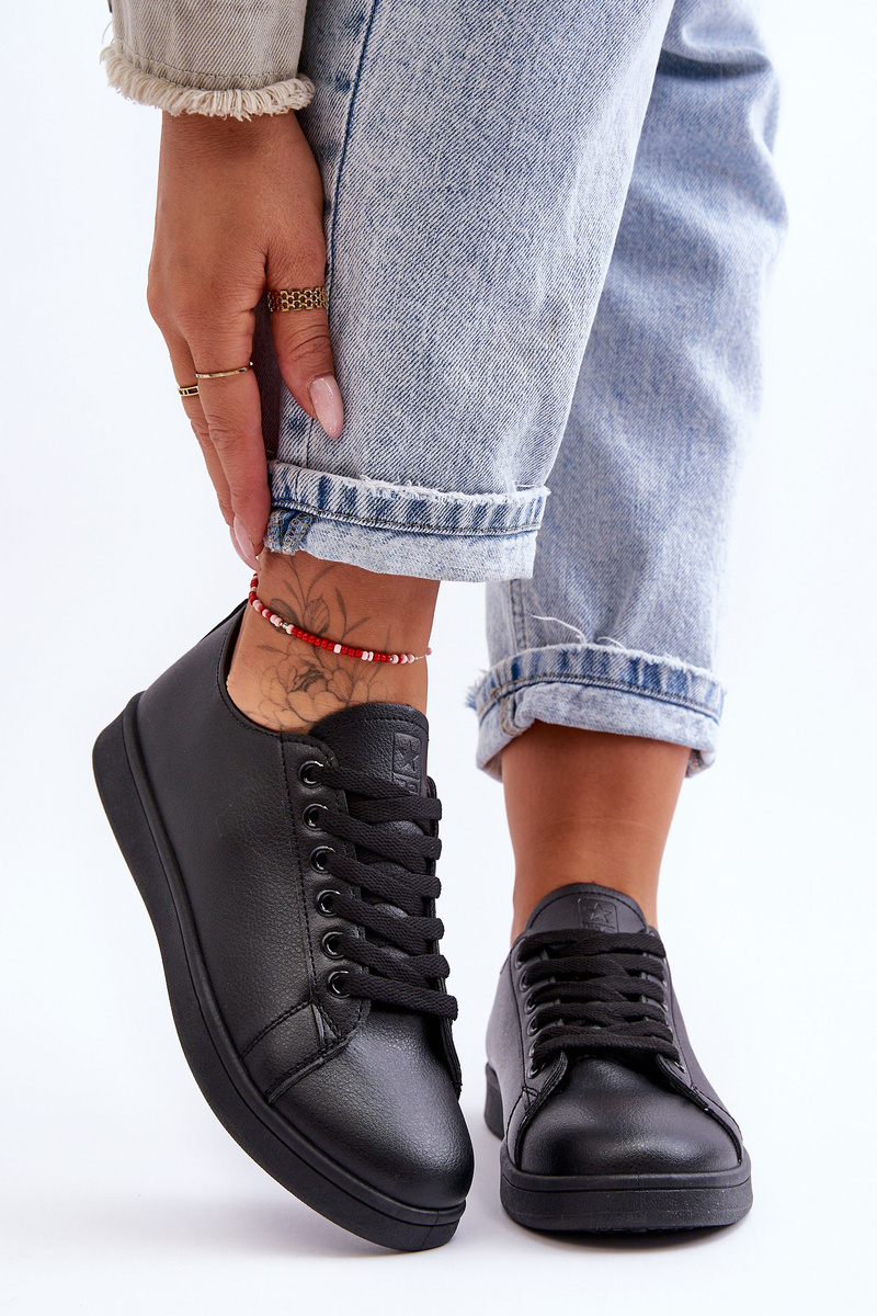 Ці класичні жіночі кросівки виготовлені з еко шкіри з манжетом на щиколотці. Взуття має ніжну платформу. Ця вічна модель повинна бути у вашому гардеробі! Кінчик закруглений. Тканинна устілка забезпечить комфорт під час використання. Дана модель класично прошнурована. При виборі розміру орієнтуйтеся на таблицю розмірів.