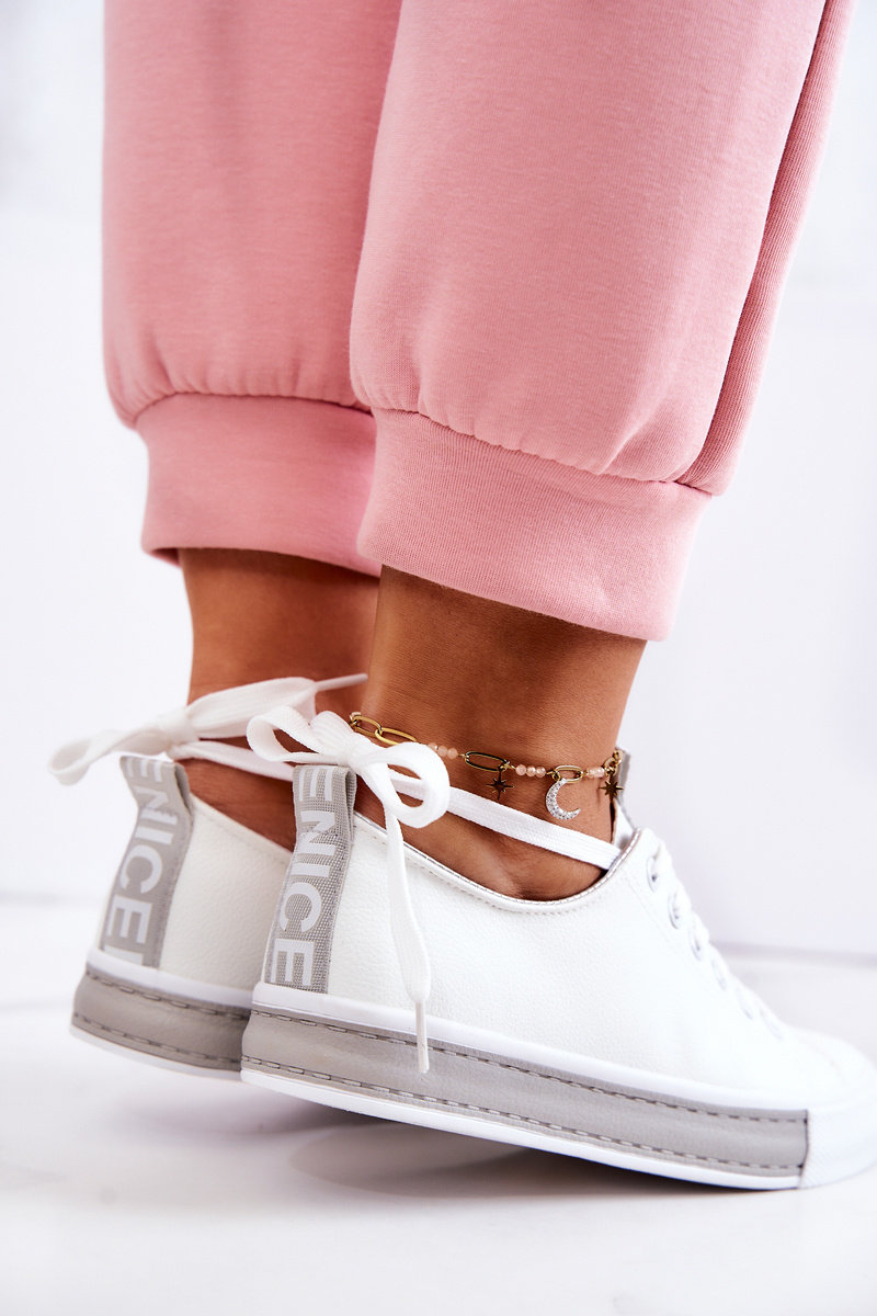 Жіночі шкіряні кросівки біло-сірі Mikayla