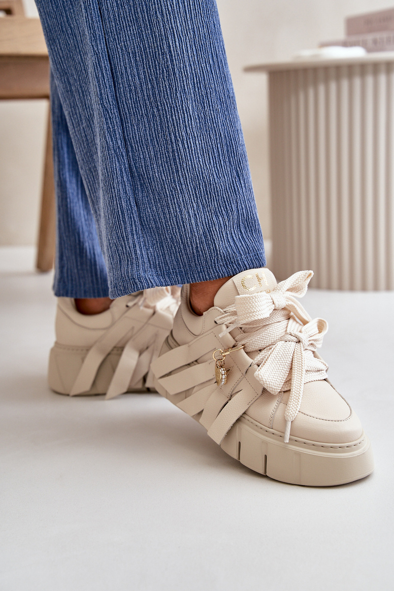 Жіночі шкіряні кросівки з декором CheBello 4292 Бежеві
