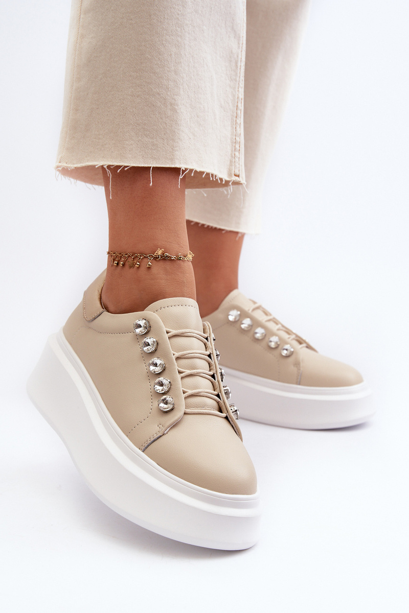 Жіночі шкіряні кросівки на масивній платформі бежеві S.Barski LR628