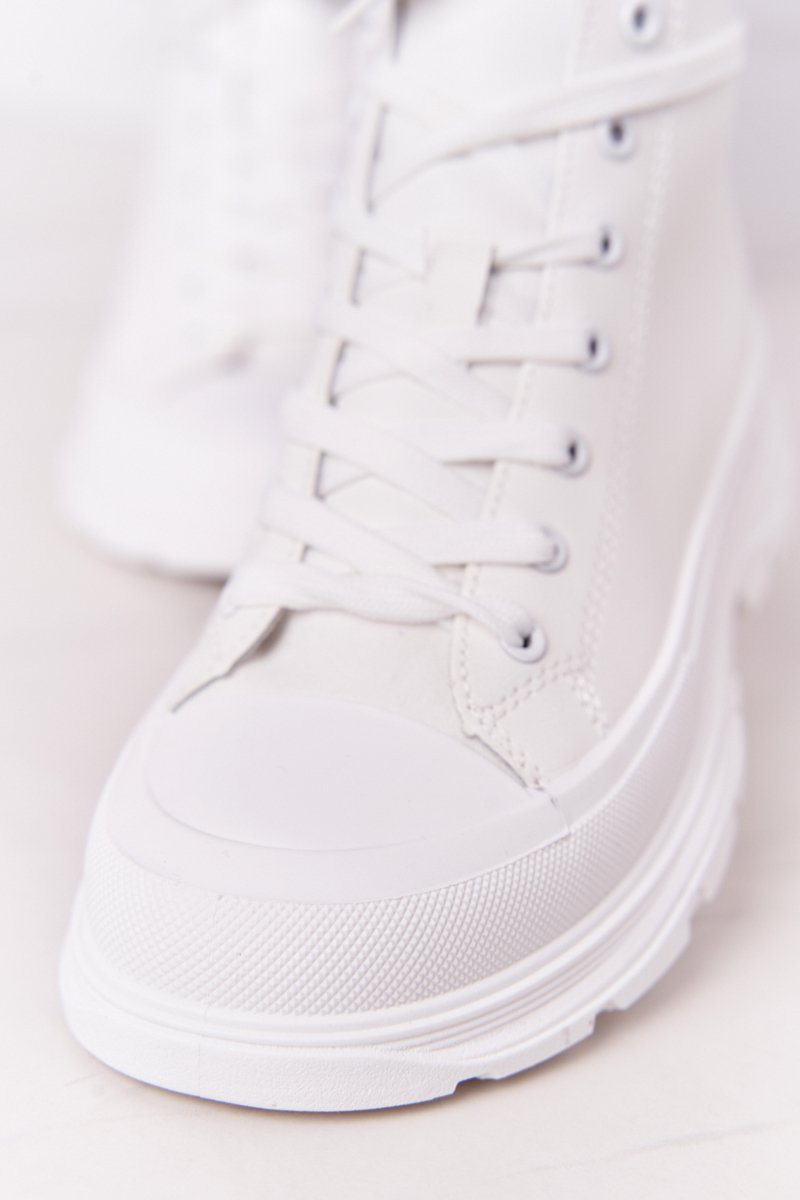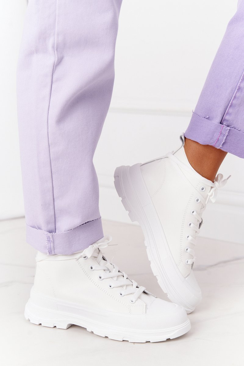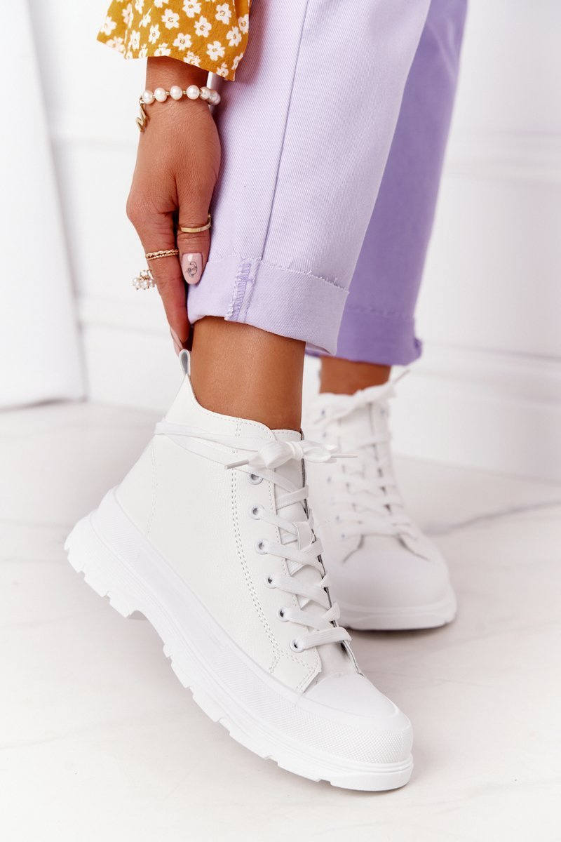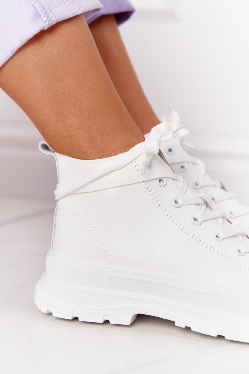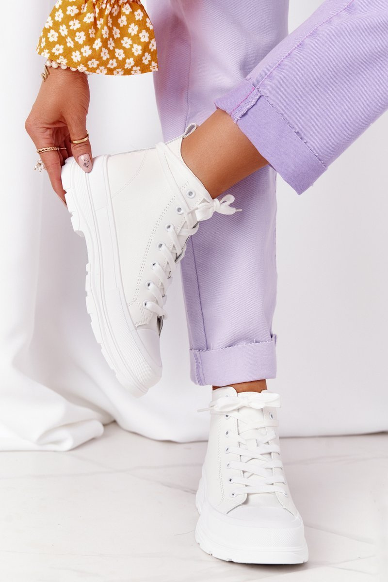 Жіночі шкіряні кросівки на масивній підошві білого кольору Trissy