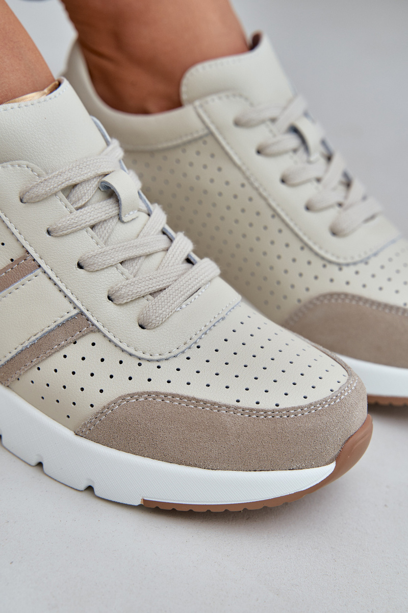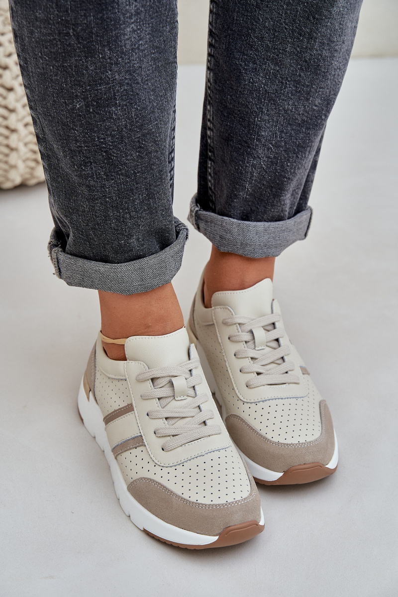 Жіночі шкіряні кросівки на платформі бежеві гатира