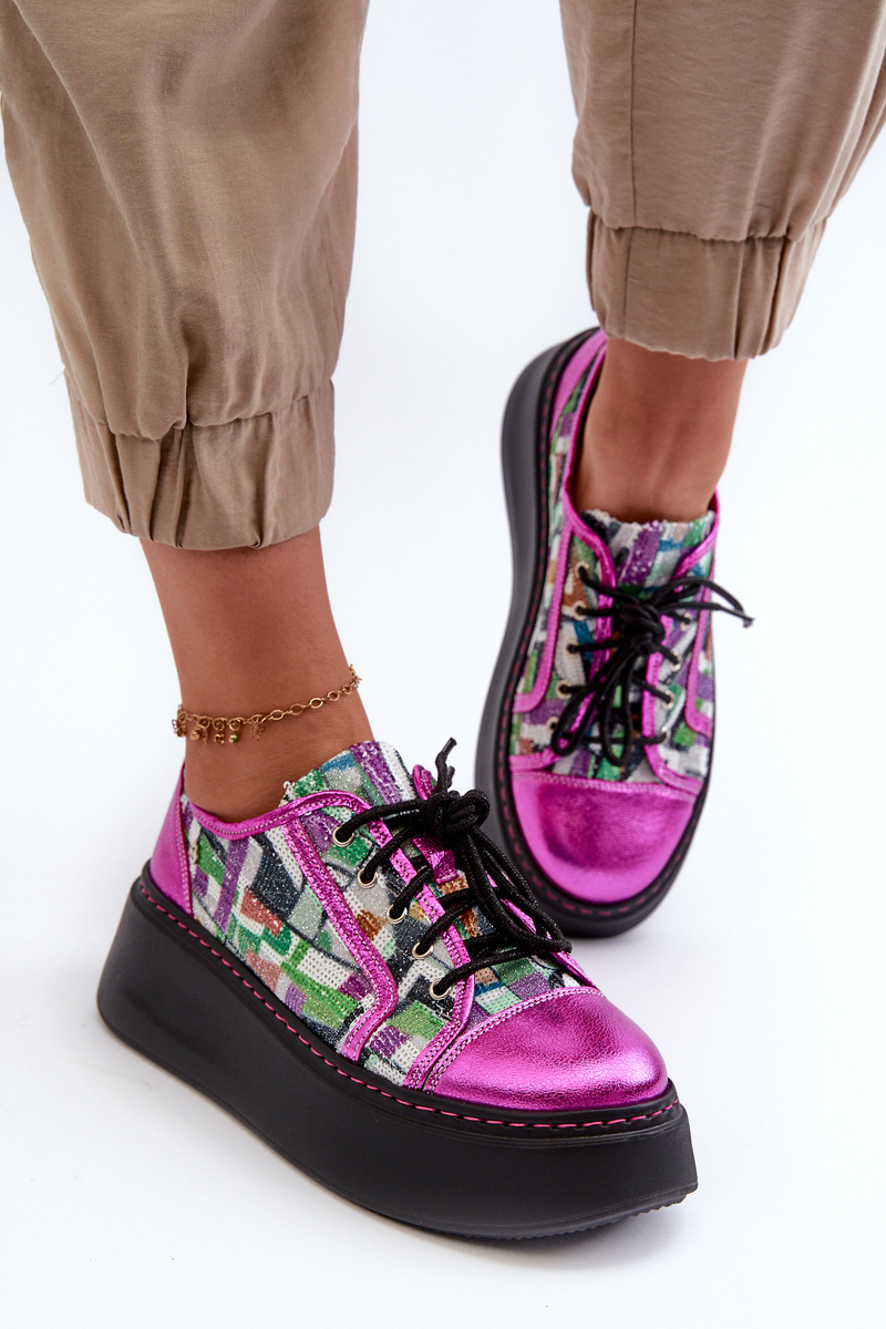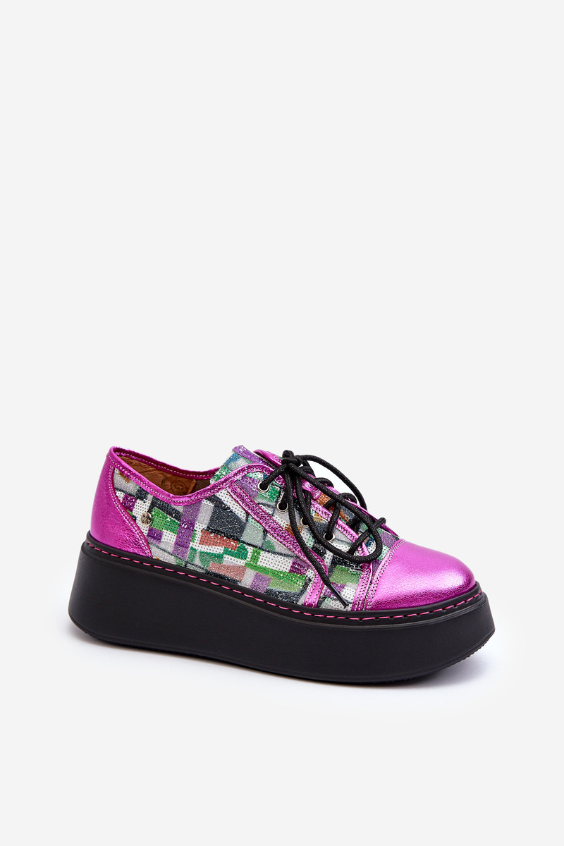 Жіночі шкіряні кросівки на платформі Maciejka 06479-15 Фуксія