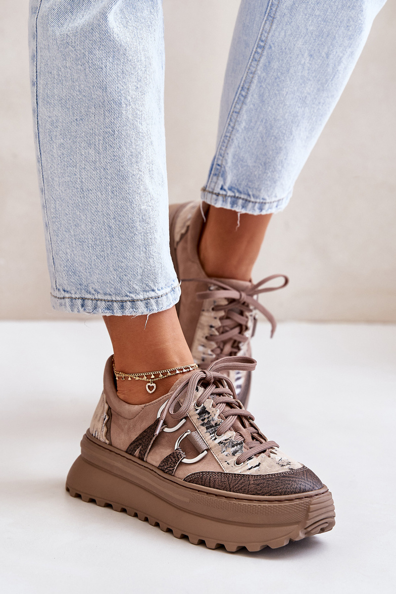 Жіночі шкіряні кросівки на платформі Maciejka 06562-10 Темно-бежеві