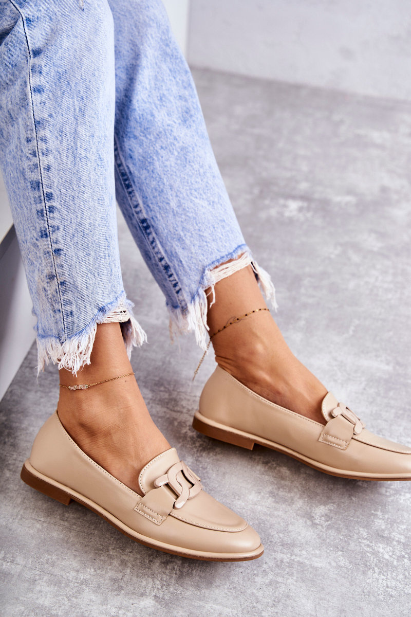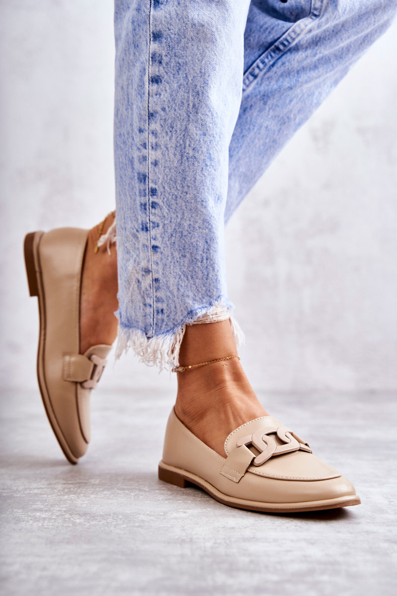 Жіночі шкіряні лофери з декором бежеві Керрі