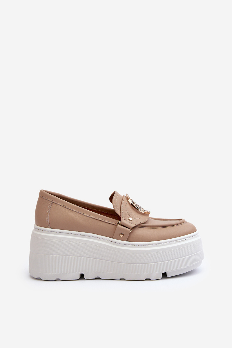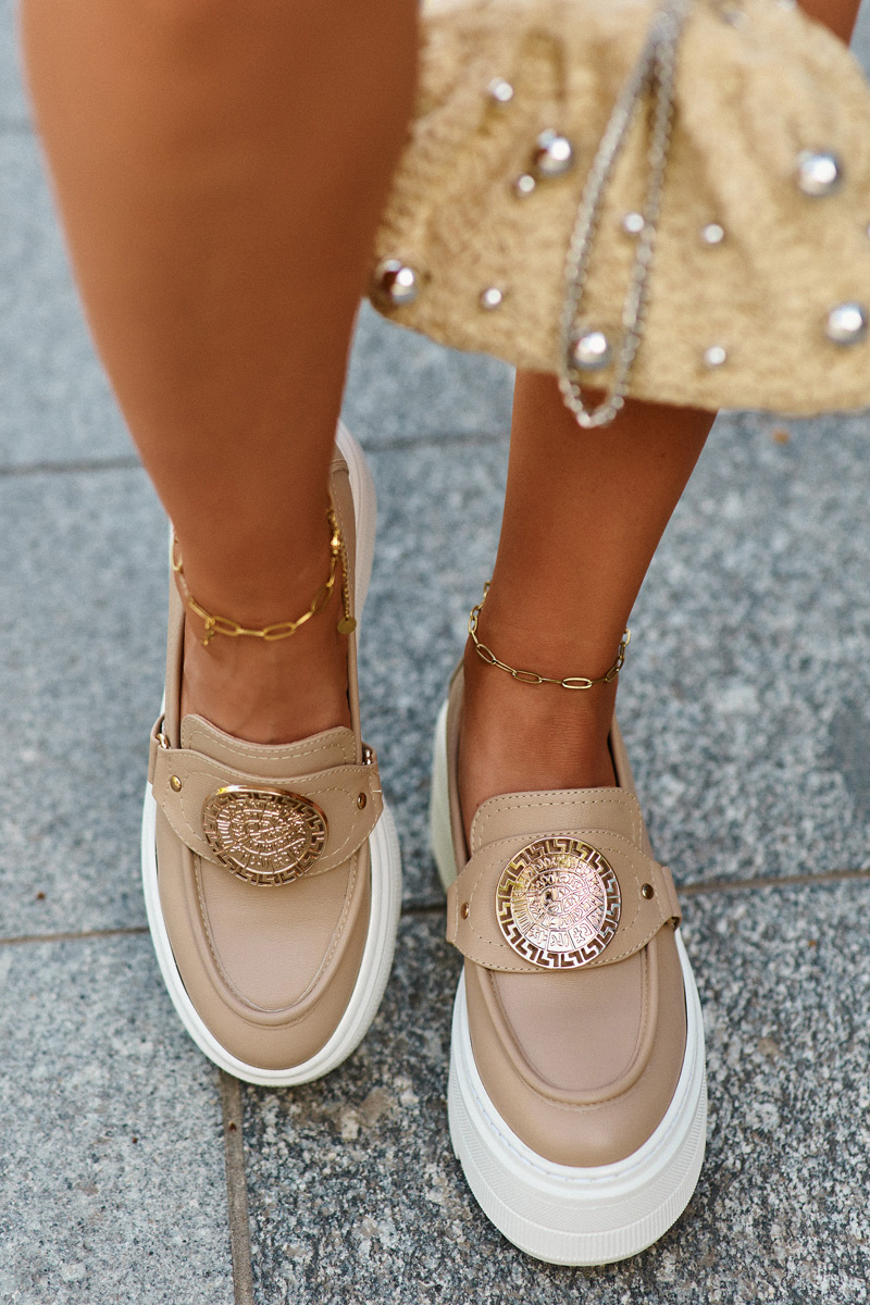 Жіночі шкіряні лофери з орнаментом Zazoo 3458 бежеві