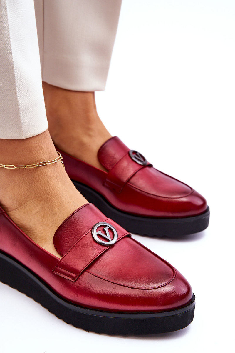 Жіночі шкіряні лофери на низькій танкетці Red Synthia