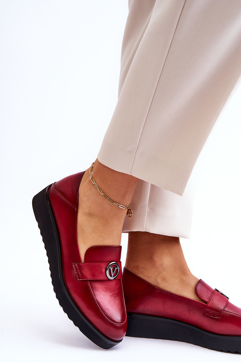 Жіночі лофери виготовлені з якісної еко шкіри. Вони мають пояс з декором у формі кола та буквою V спереду. Мокасини сидять на платформі з низькою танкеткою. М'яка устілка з натуральної шкіри забезпечить комфорт під час використання. Обираючи розмір, орієнтуйтеся на таблицю розмірів.