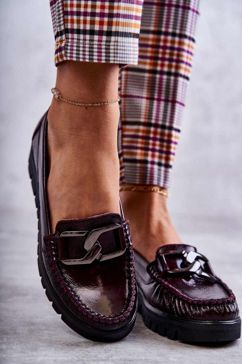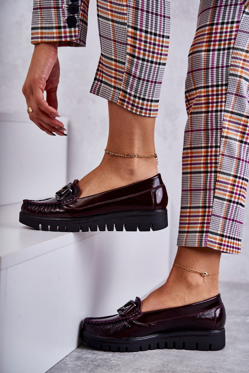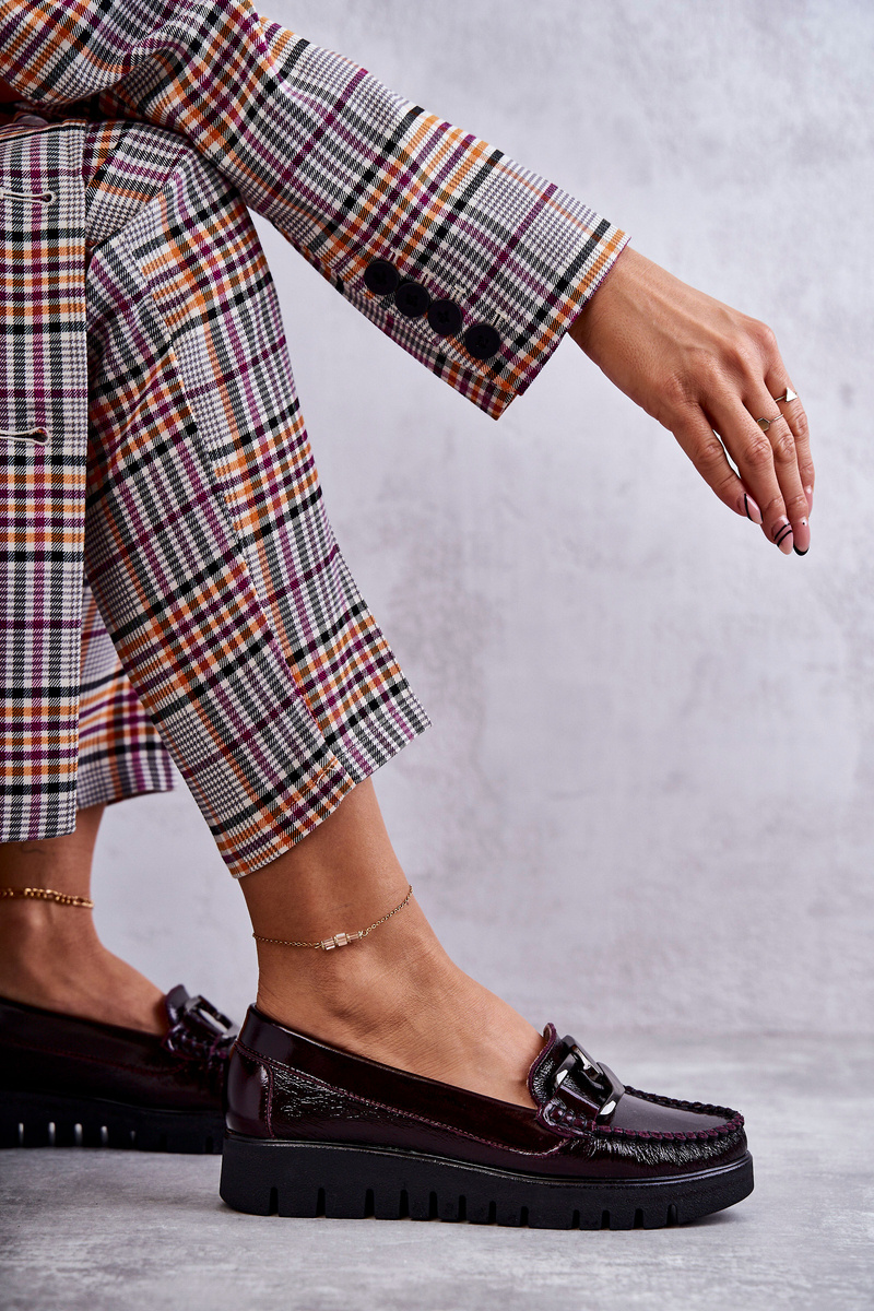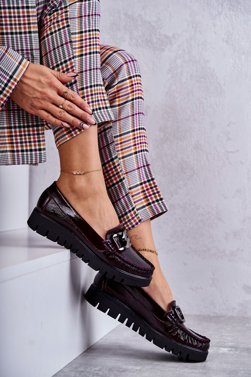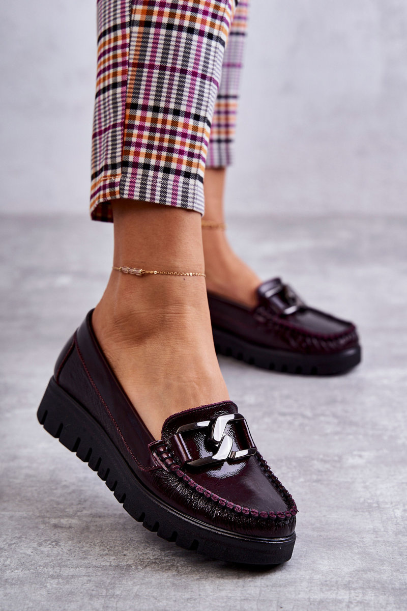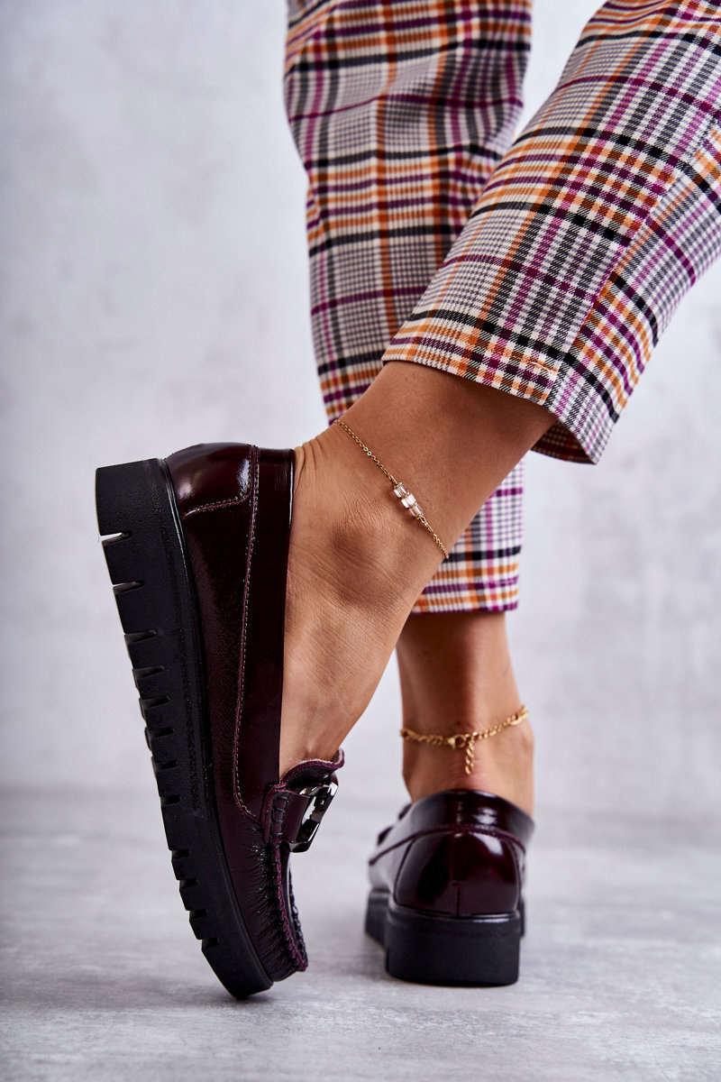 Жіночі шкіряні лофери на платформі бордові Венесія