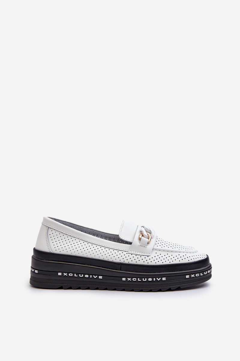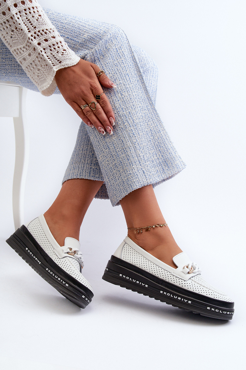 Жіночі шкіряні лофери на платформі з ланцюжком S.Barski LR618 білі