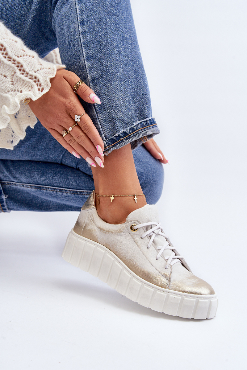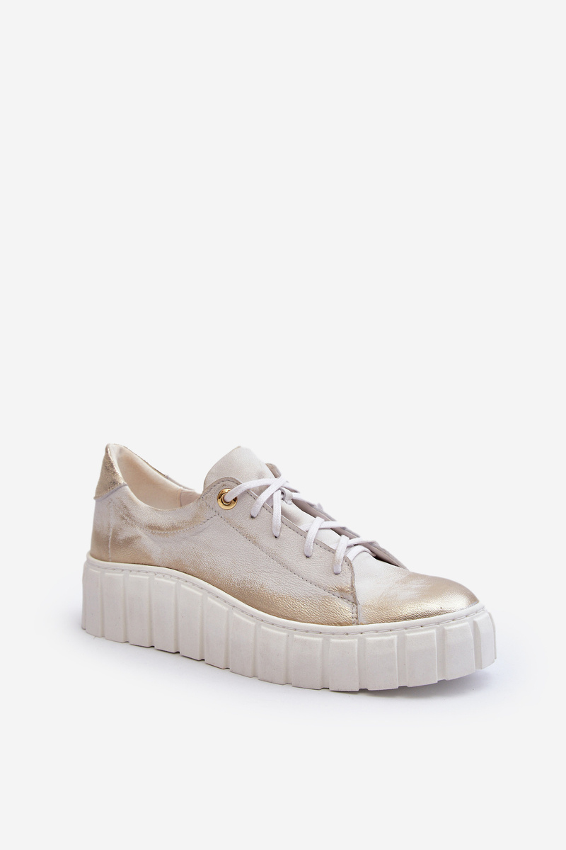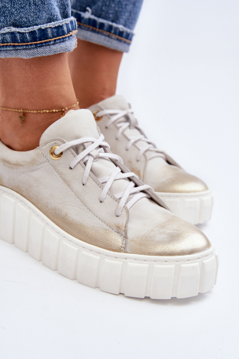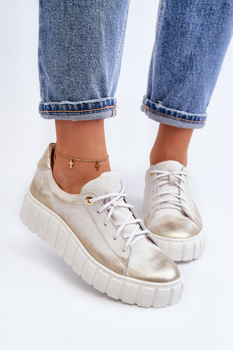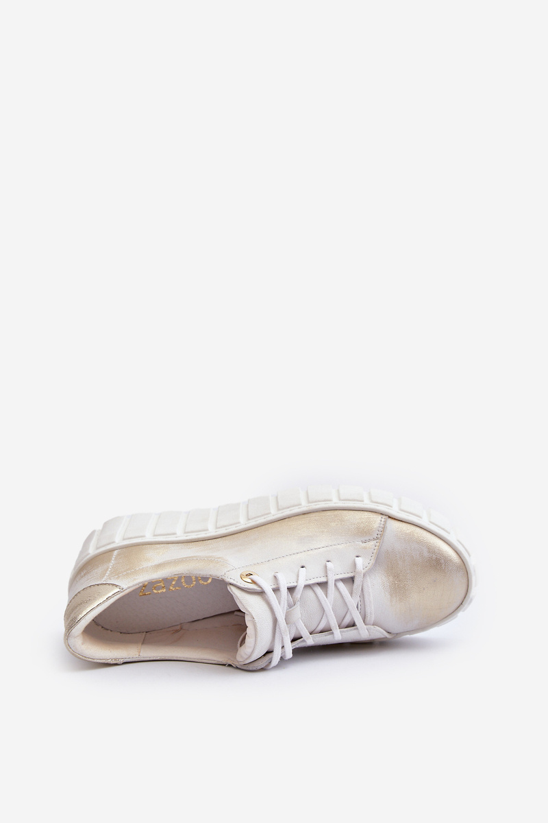 Жіночі шкіряні лофери на товстій підошві Zazoo 2919 золоті
