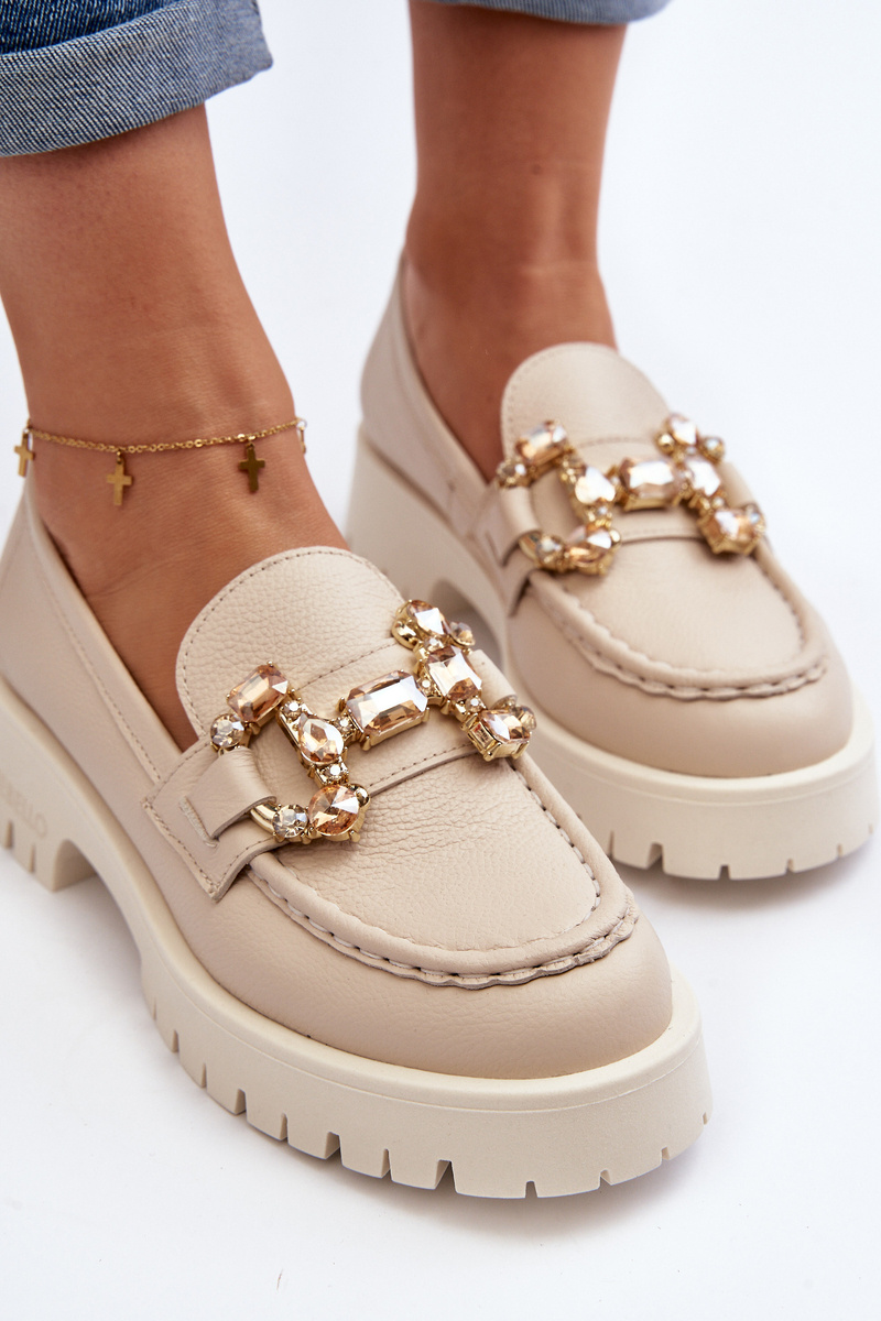 Жіночі шкіряні мокасини з декором CheBello 4369 Бежеві