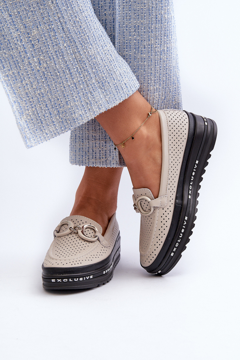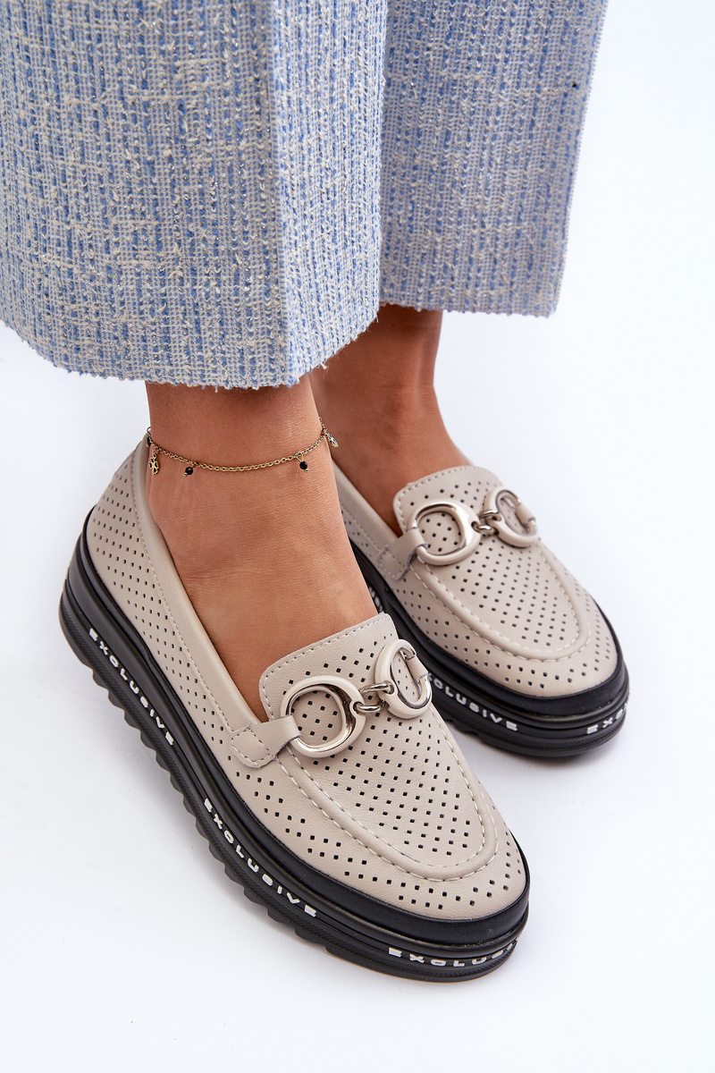 Жіночі шкіряні мокасини на платформі з декором S.Barski LR750 Бежеві
