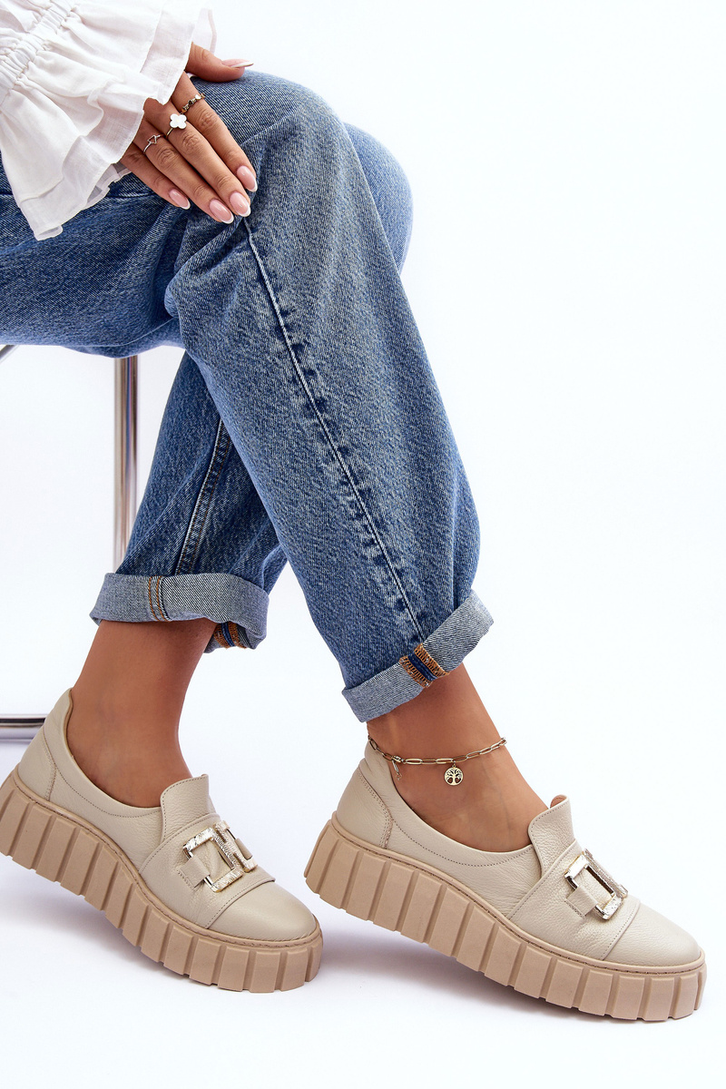 Жіночі шкіряні півчеревики на платформі бежеві Lewski 3398