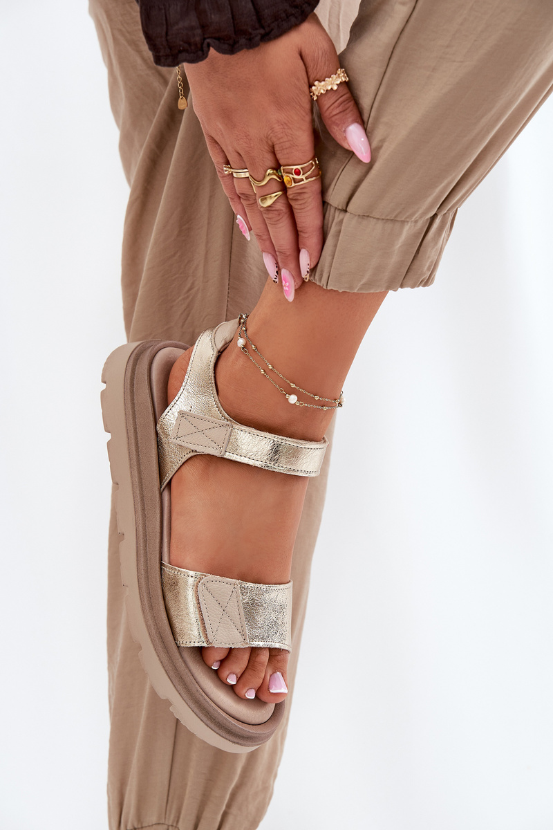 Жіночі шкіряні сандалі на платформі золоті Зазу 40443